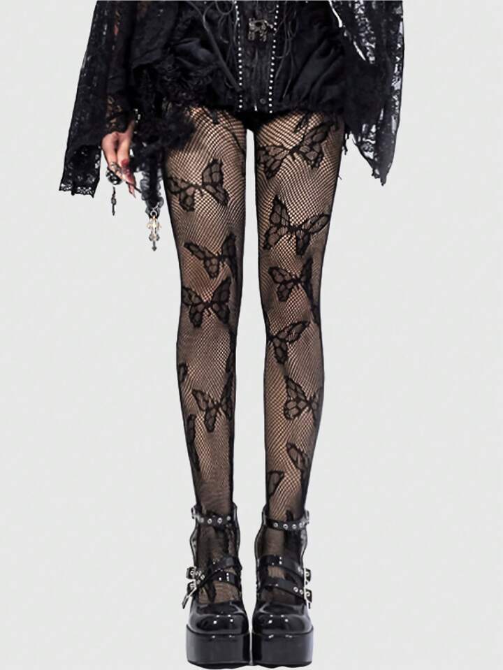 Goth زوج من جوارب الشباك ذات نمط الفراشة الحلوة والجوتية، مناسبة لمناسبة هالوين