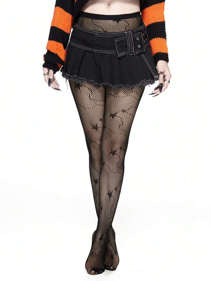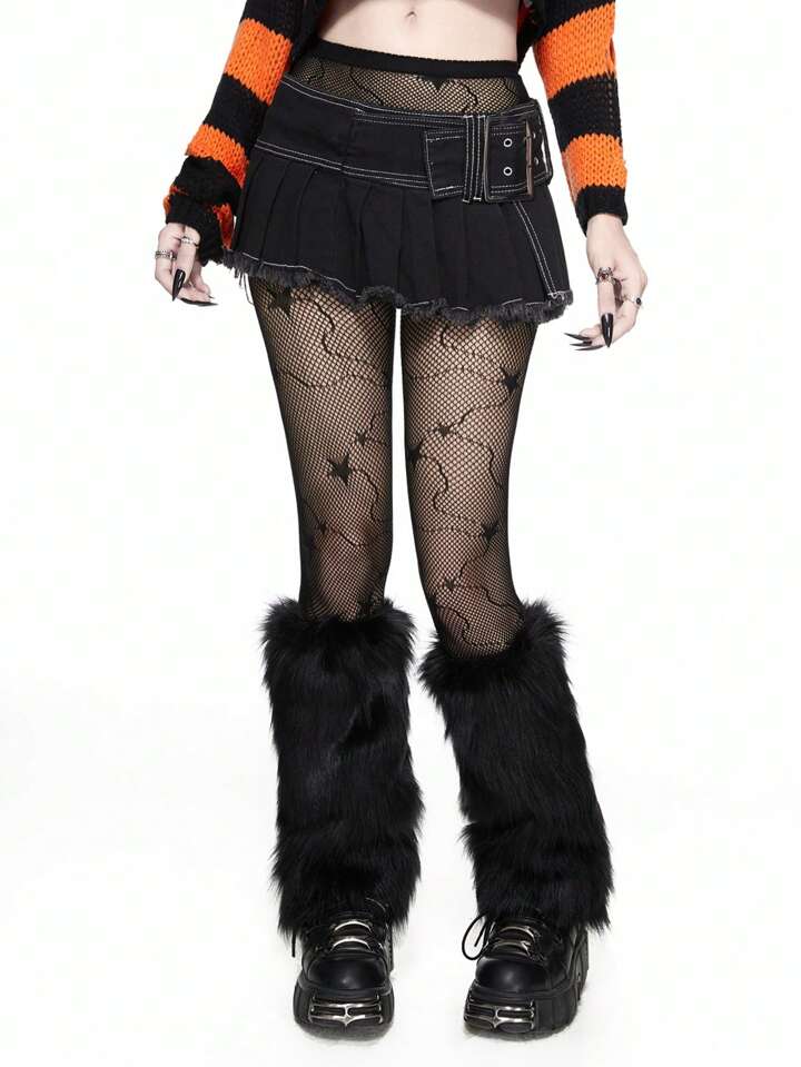 Goth طقم موضة فاتنة بمظهر مُظلم، زوج واحد من جوارب السيقان المبطنة بلون مُوَحَّد + زوج واحد من جوارب الشباك المطاطية بطراز جوتيك
