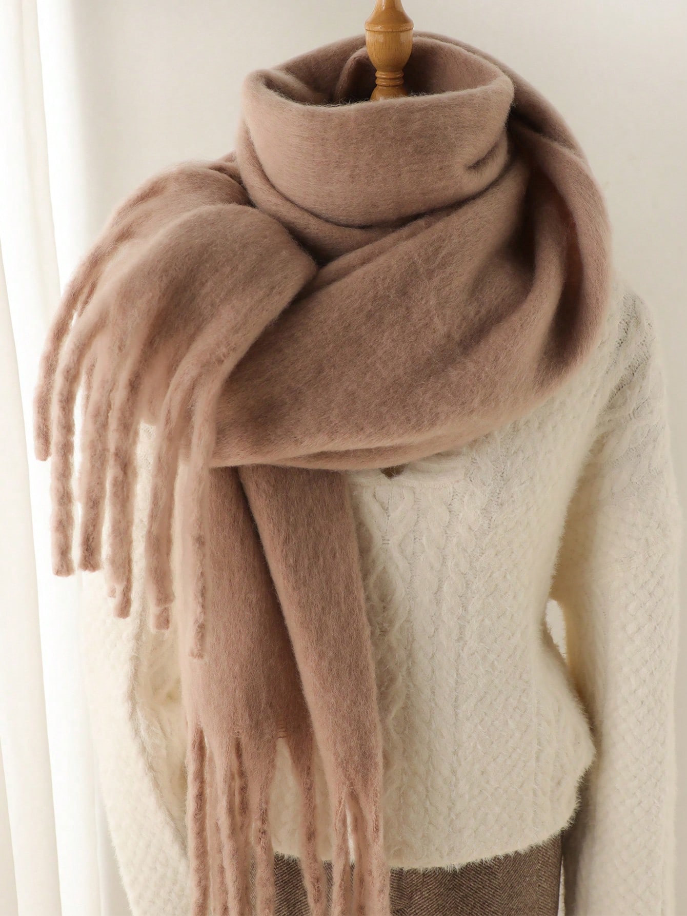 قطعة واحدة وشاح شتوي للنساء، محاك من شعر الحصان بغطاء لامع كالكشمير، لفات وأربطة ثقيلة دافئة، وشاح سادة مزخرف بشراريع لليدي، مناسب للاستخدام الخارجي