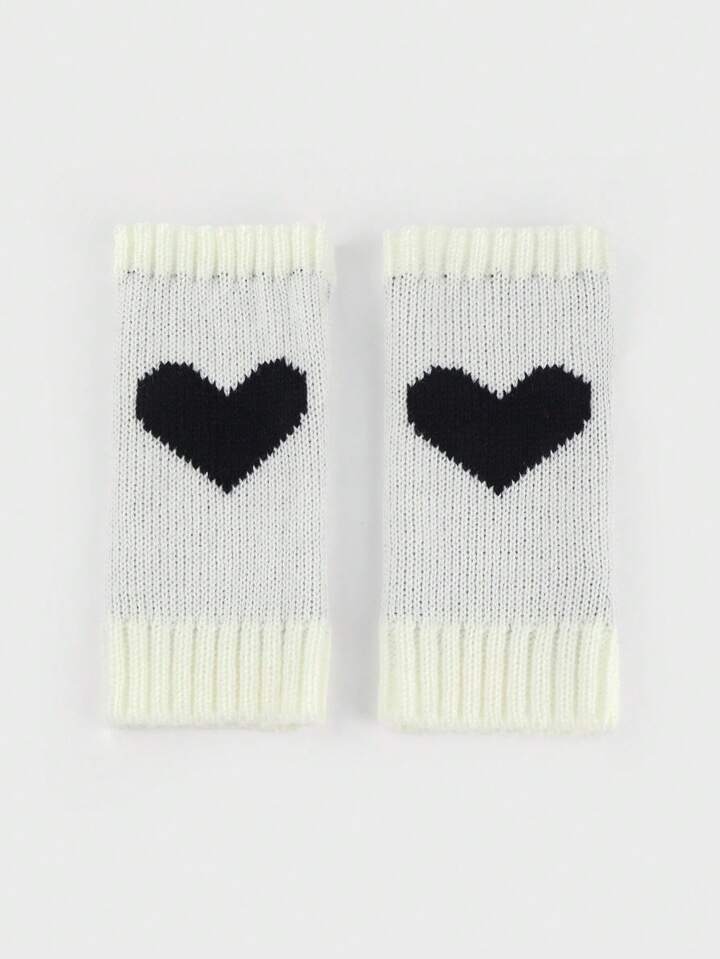 زوج واحد من القفازات بدون أصابع بطباعة قلب، نسيج دافئ ومريح