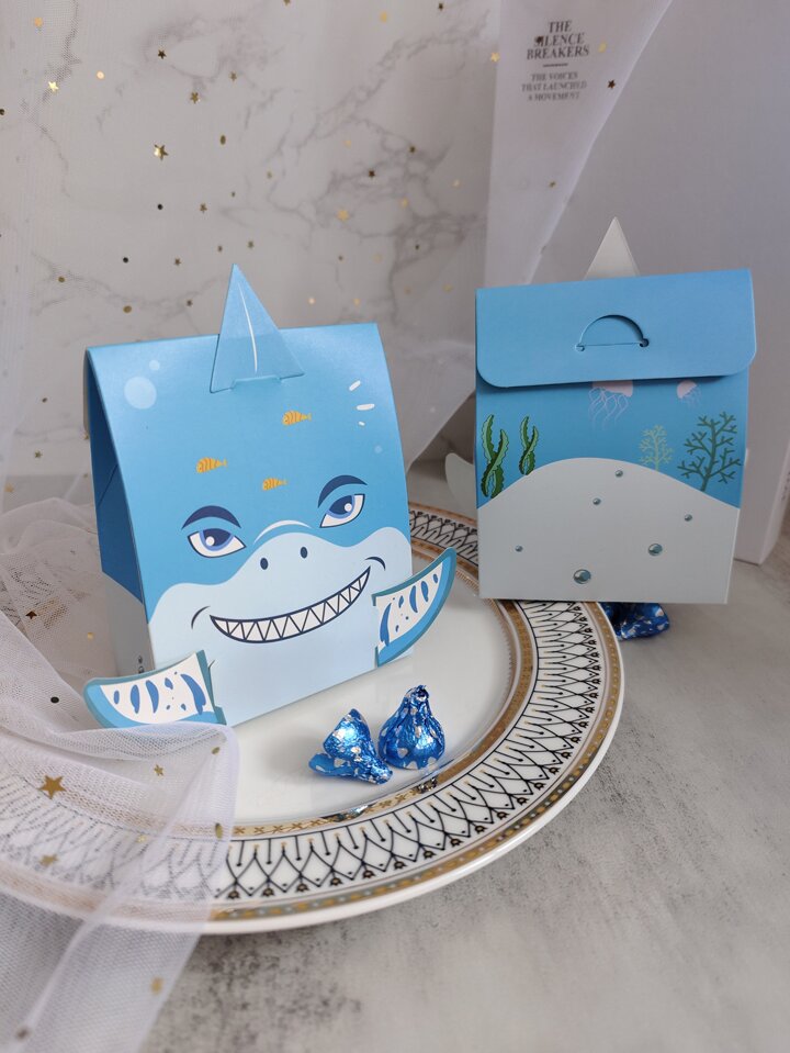 صندوق الحلويات سمك القرش كرتون تصميم 10 قطع