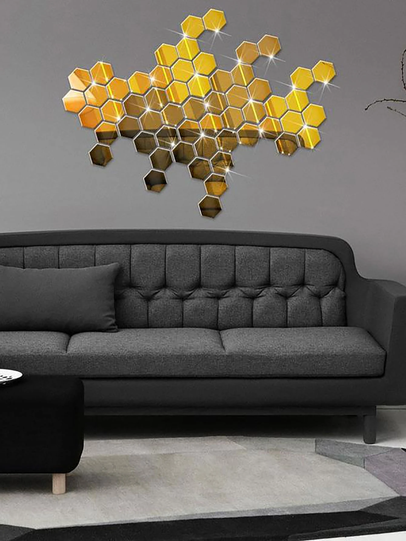 ملصق حائط بسطح مراية شكل مدس 12 قطعه
