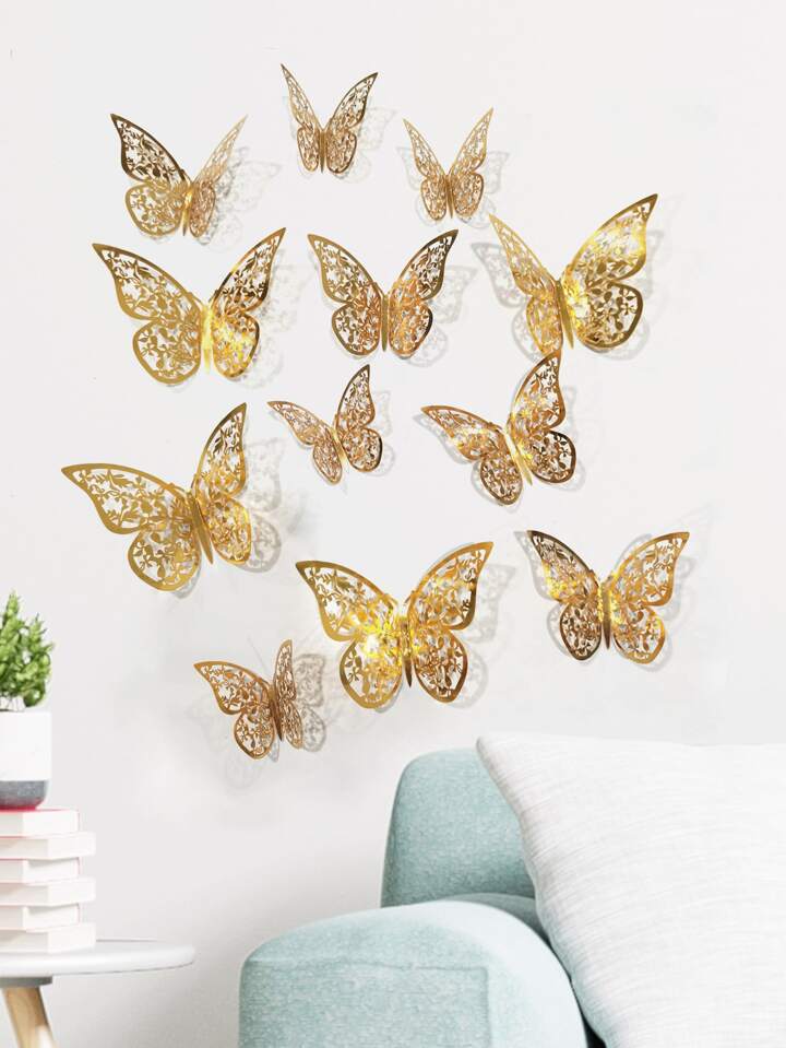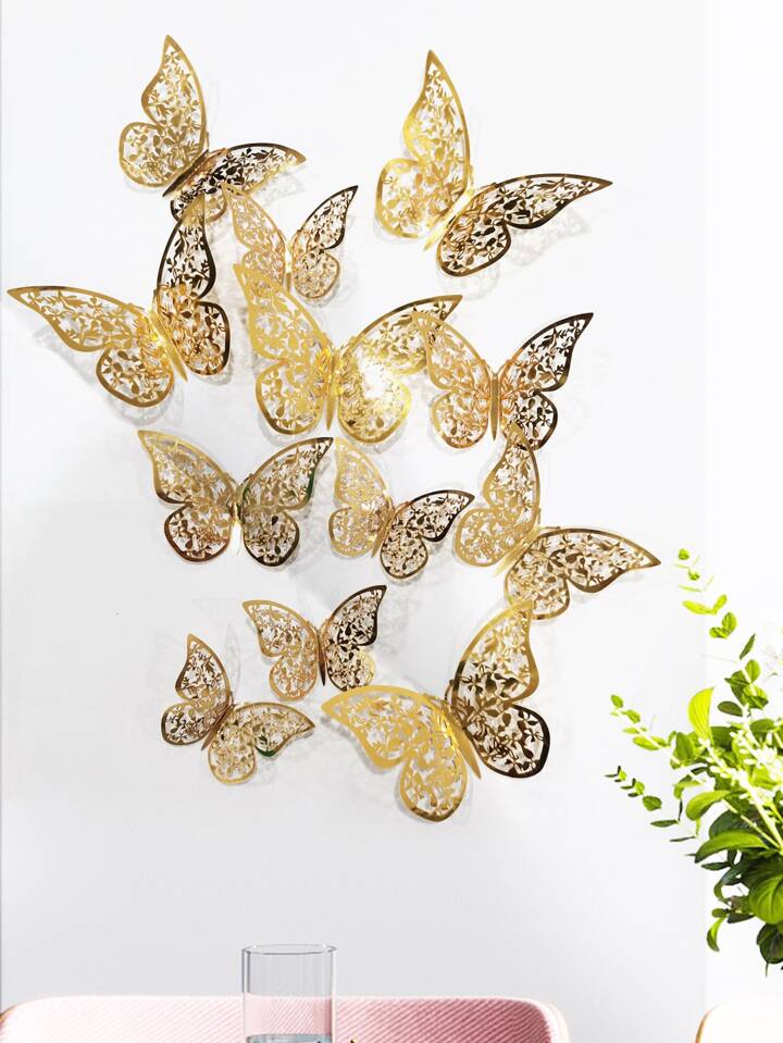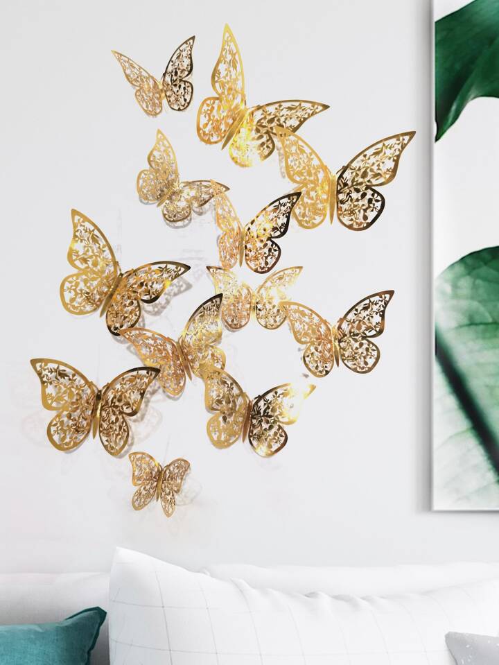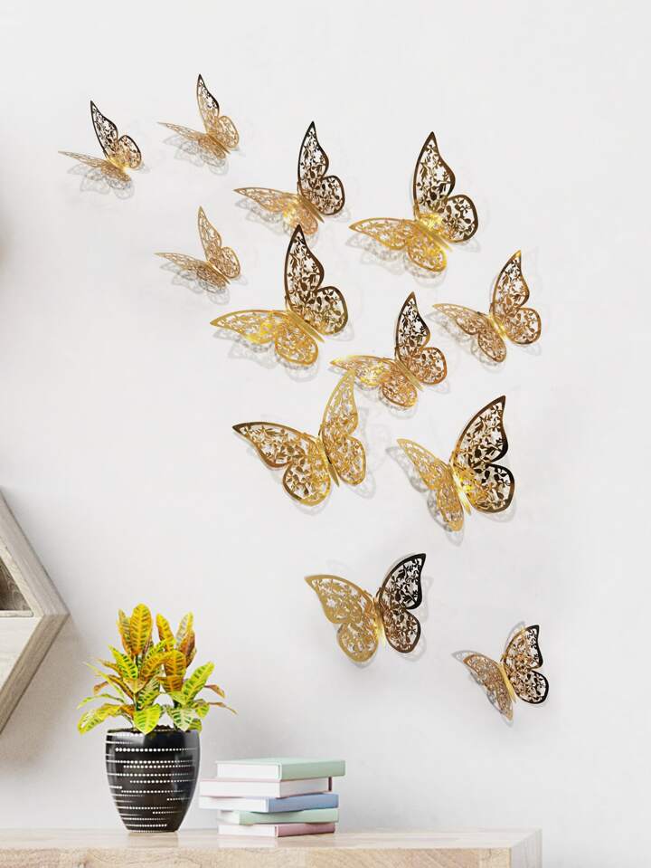 12 قطعة ملصقات فراشات جوفاء للحائط، ملصقات فراشات ذهبية ورقية لديكور المنزل، ملصقات، ديكور الحائط، ديكور فينيل للديكورات المنزلية، عناصر ديكور الربيع لتنشيط منزلك، ملصقات ديكور رامة هدايا عيد الميلاد والتخرج وديكور المدرسة والمفاجآت والسكن الجامعي والعودة إلى المدرسة