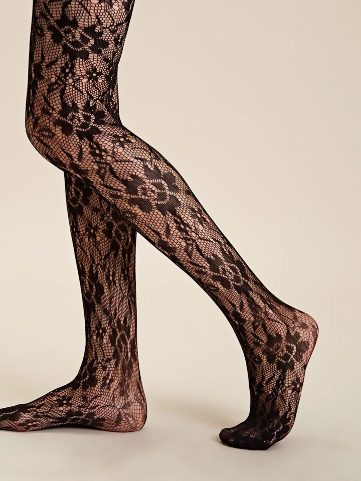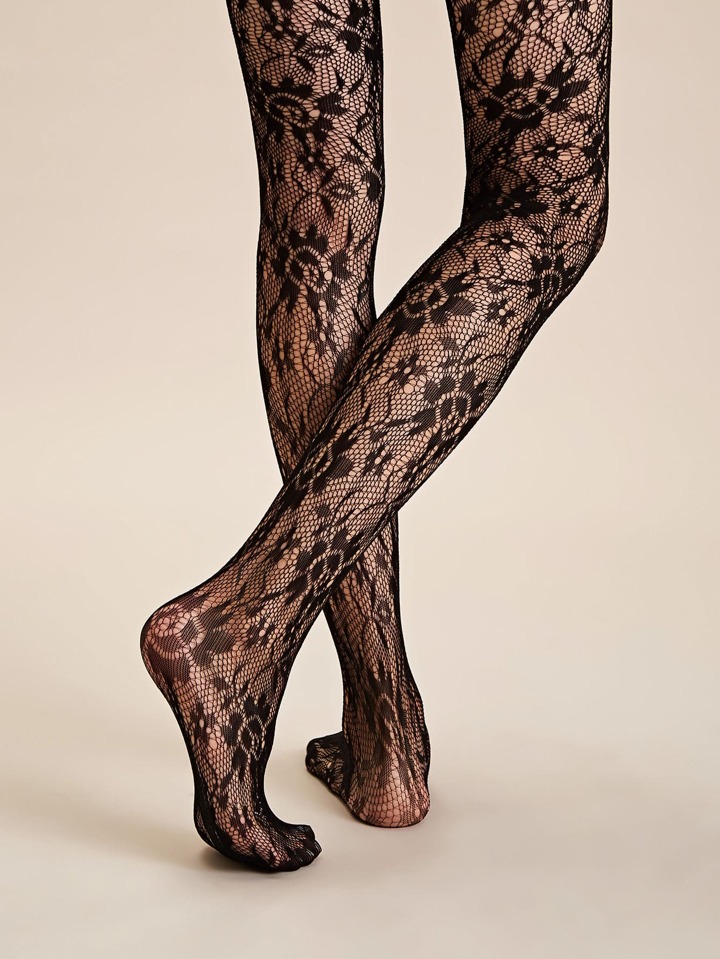 جوارب طويل بقص مجوف شبكي مزهر زوج واحد