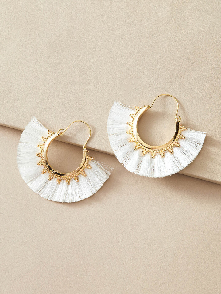 اقراط متدلي بهدب شكل مروحة زوج واحد