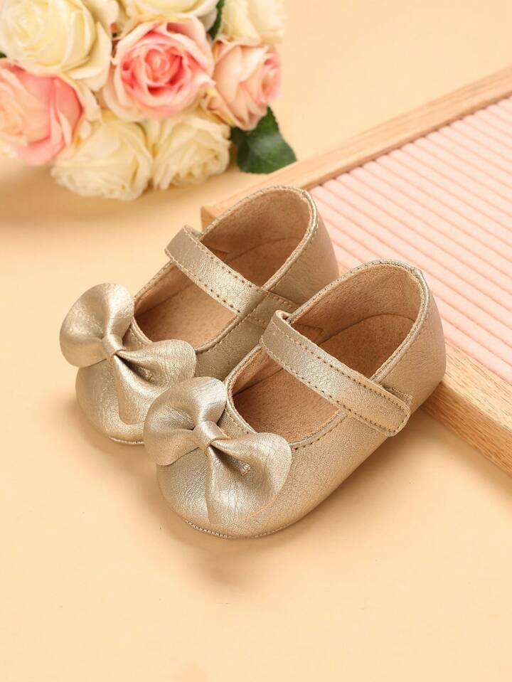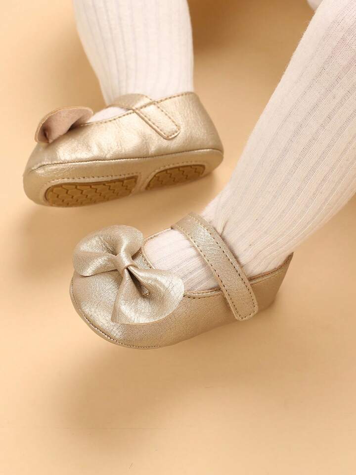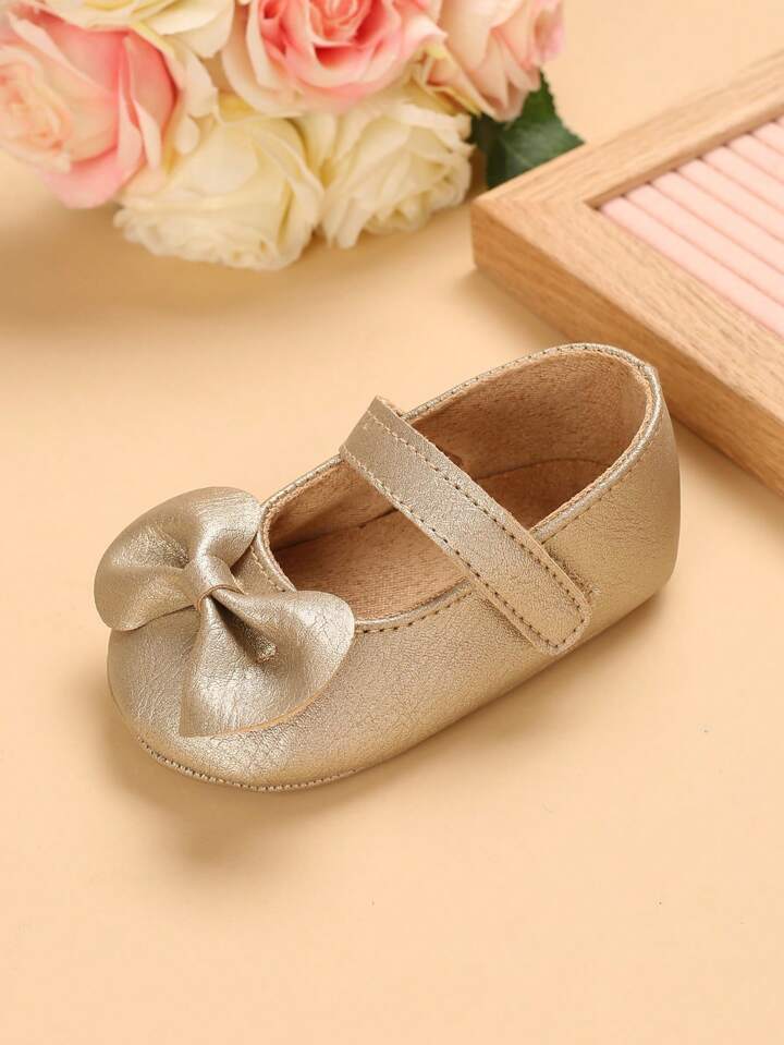 حذاء مسطح ناعم للأطفال الرضع البنات بزخرفة فيونكة للاستخدام اليومي زوج واحد