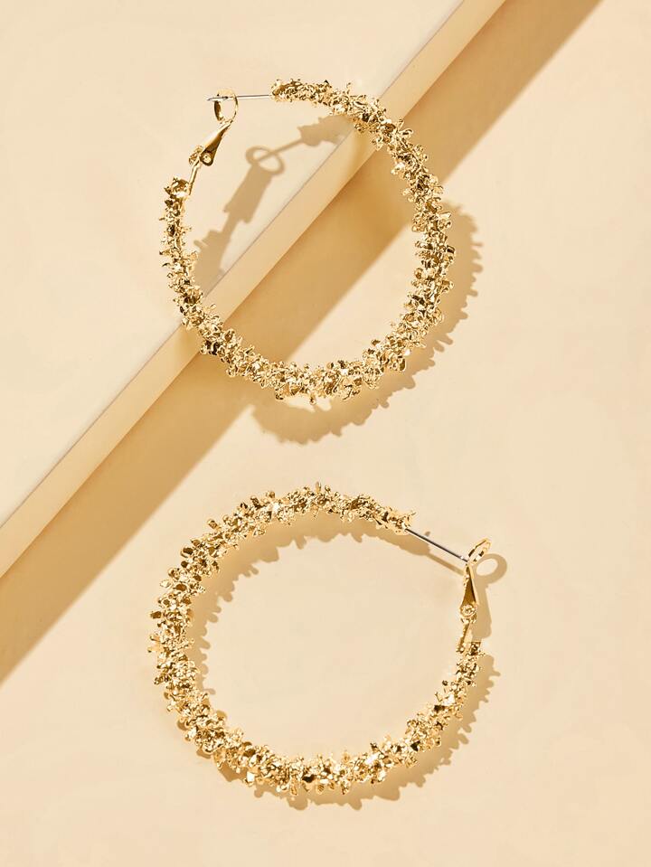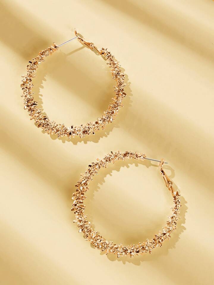 اقراط حلقي دائري ذو سطح مزخرف زوج واحد