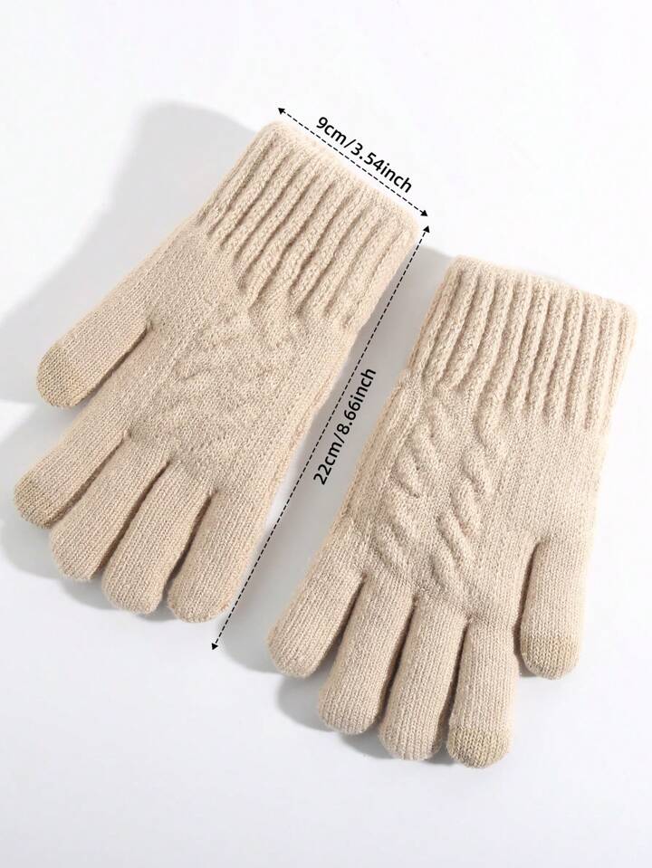 زوج واحد من قفازات شاشة اللمس الشتوية للنساء، قفازات مزدوجة الطبقات من الصوف السميك المحبوك كاملة الأصابع للطقس البارد، مناسبة للحفلات والمهرجانات والقيادة وركوب الخيل والمشي لمسافات طويلة والجري
