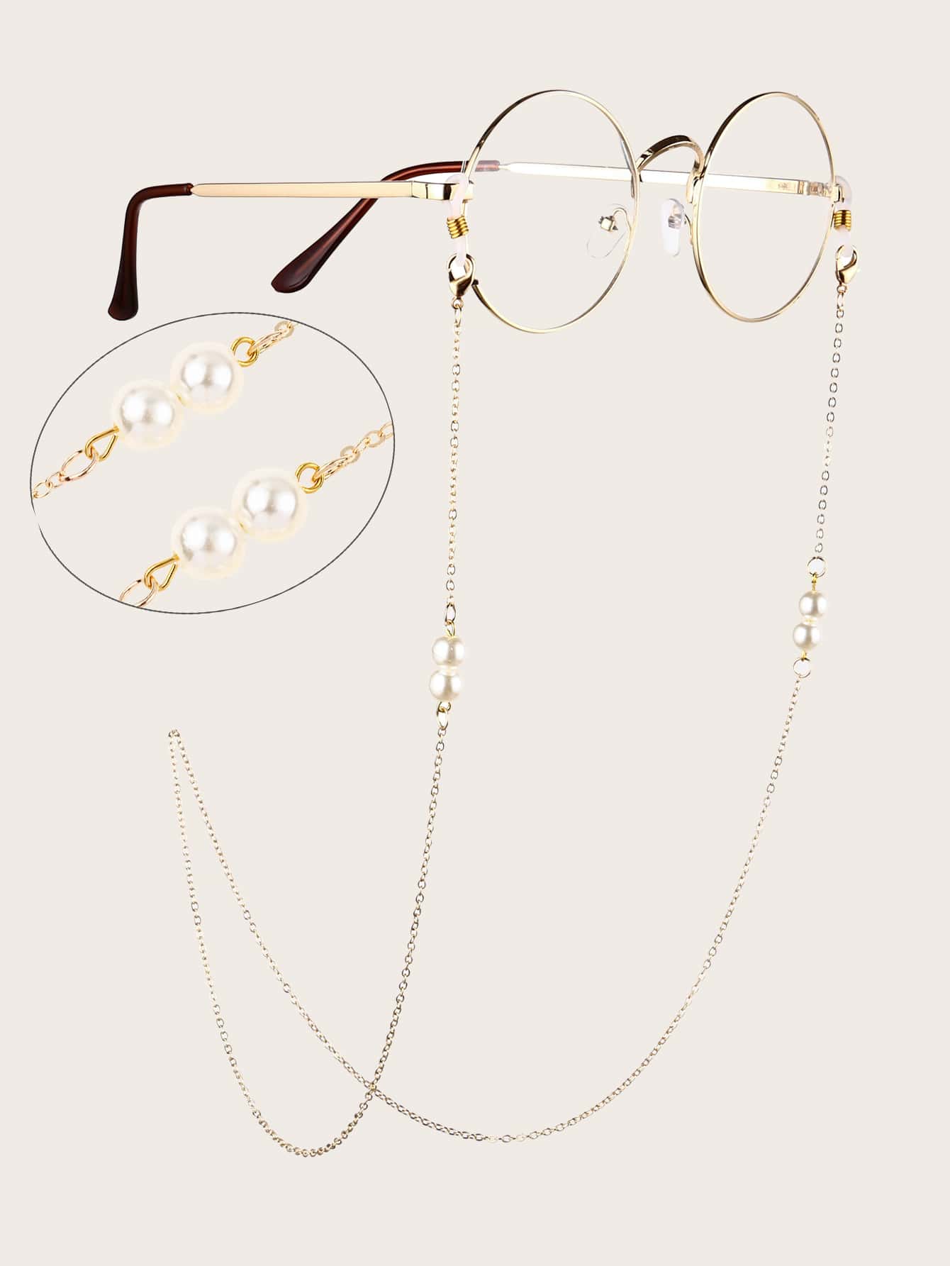 قطعة واحدة سلسلة نظارات معدنية مزينة بخرز اصطناعي، أنيقة وأنيقة للنساء والفتيات، سلسلة نظارات ضد الانزلاق للمرأة، سيور نظارات للقراءة، سير نظارات شمسية