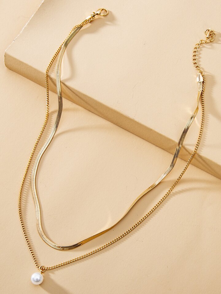 قلادة بطبقتين أنيقة وعصرية من الفولاذ المقاوم للصدأ مرصعة باللؤلؤ للنساء، مناسبة للارتداء اليومي والحفلات