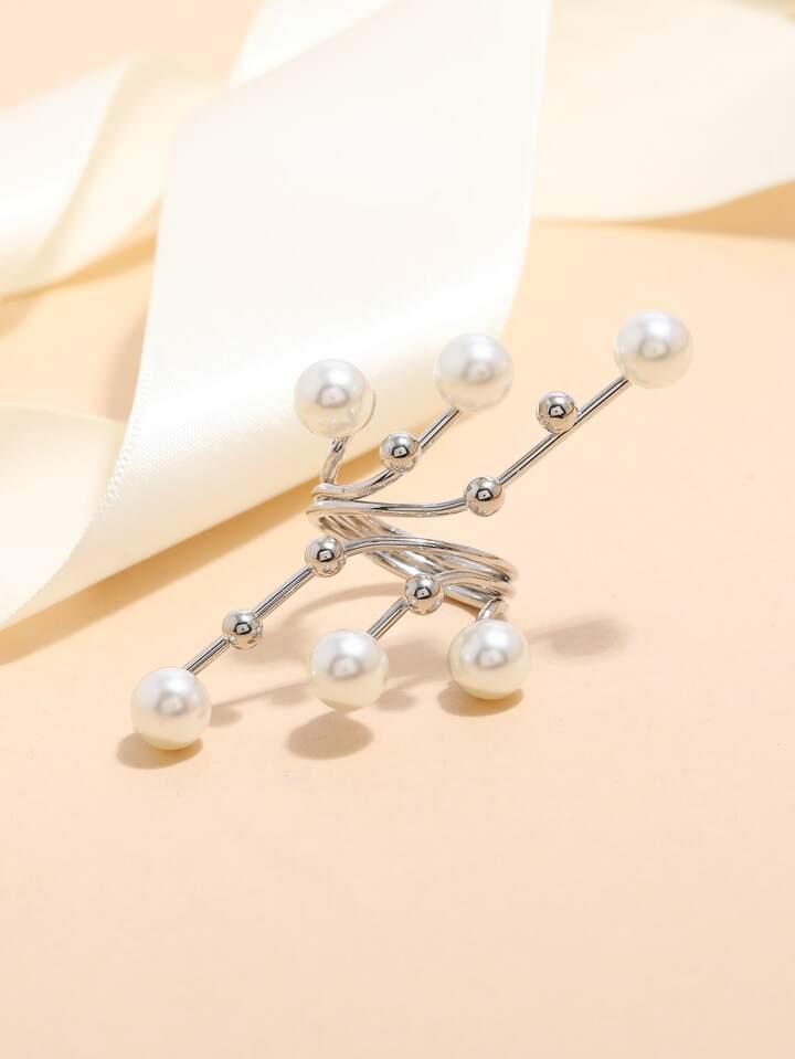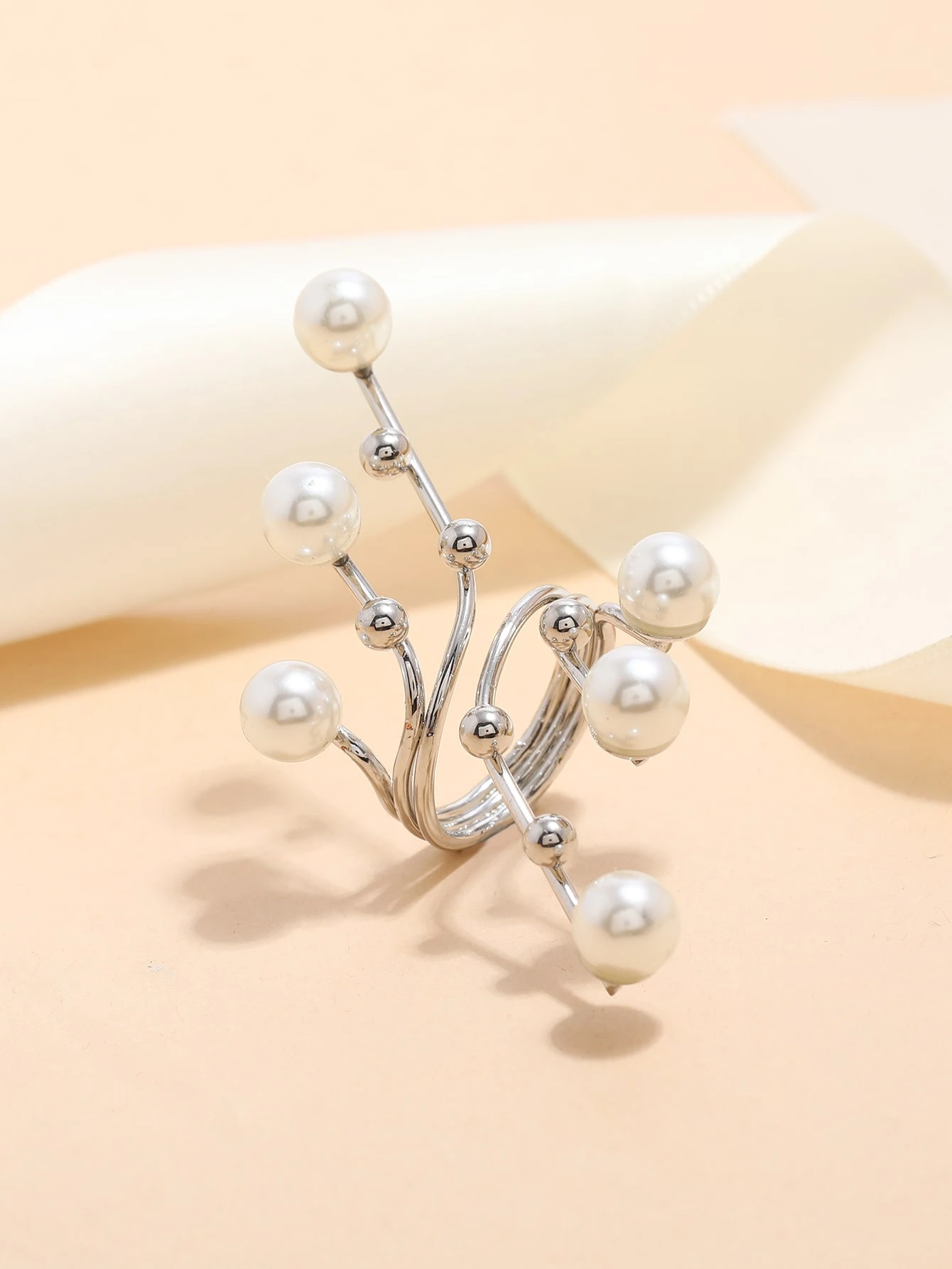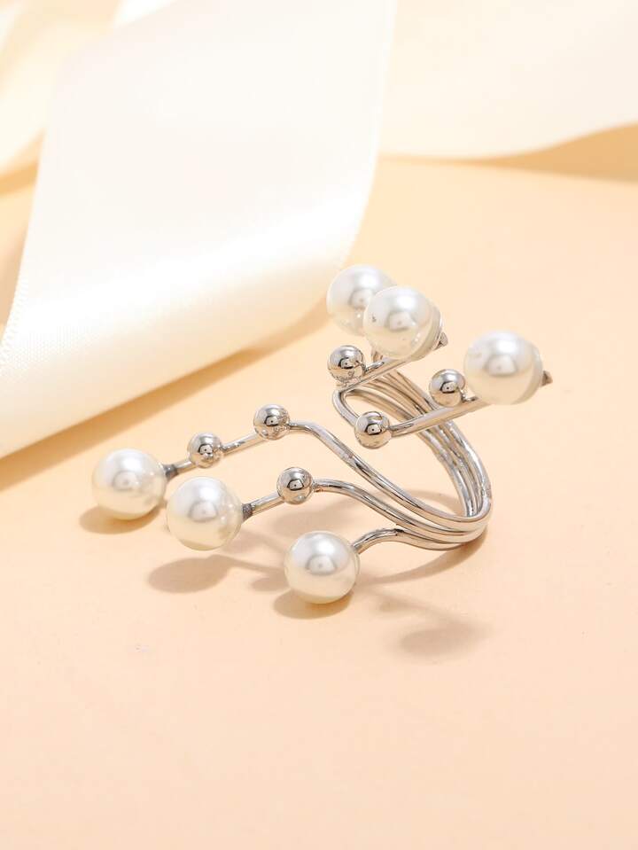 خاتم إصبع فريد جذاب ومزين باللؤلؤ قابل للفتح قطعة واحدة