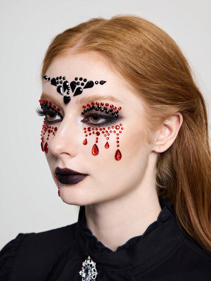 Goth قطعة واحدة ملصق وجه جوتي الطراز أحمر وأسود للهالوين ، مناسب للهالوين ، يوم المايتين ، الحفلات والمسارح