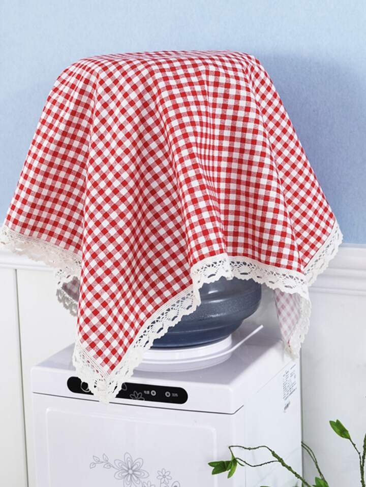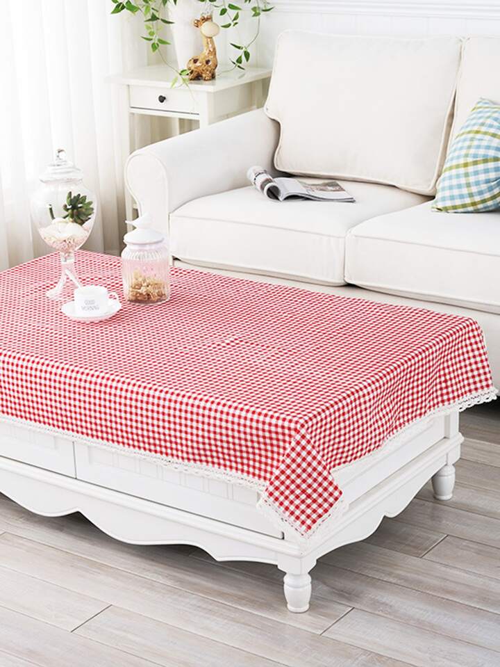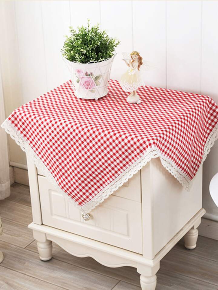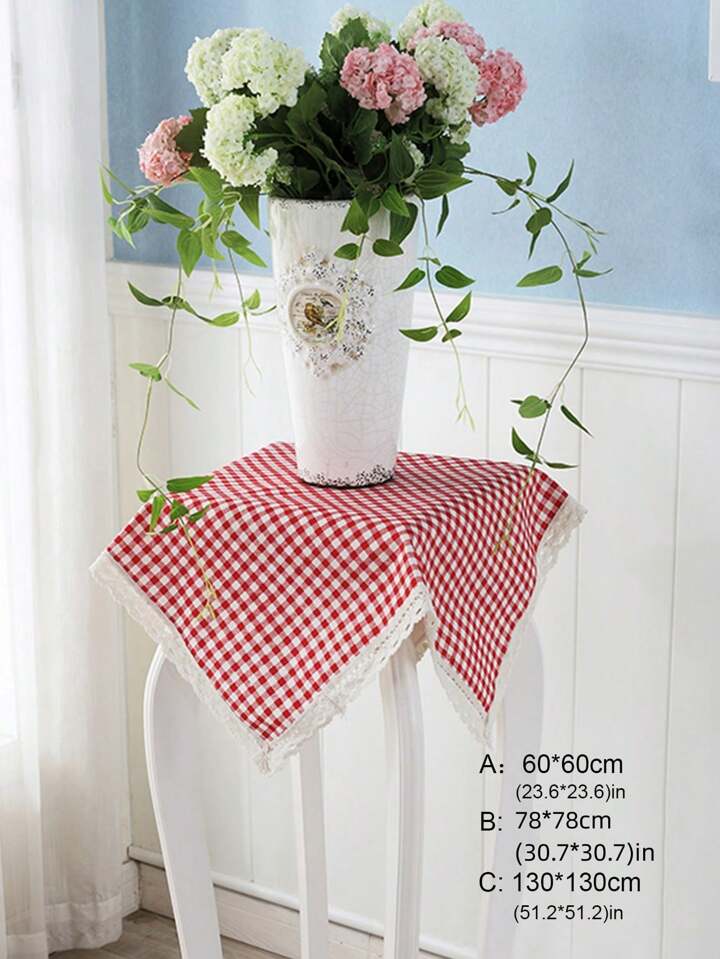 مفرش مائدة كاروهات جينغهام بأطراف دانتيل