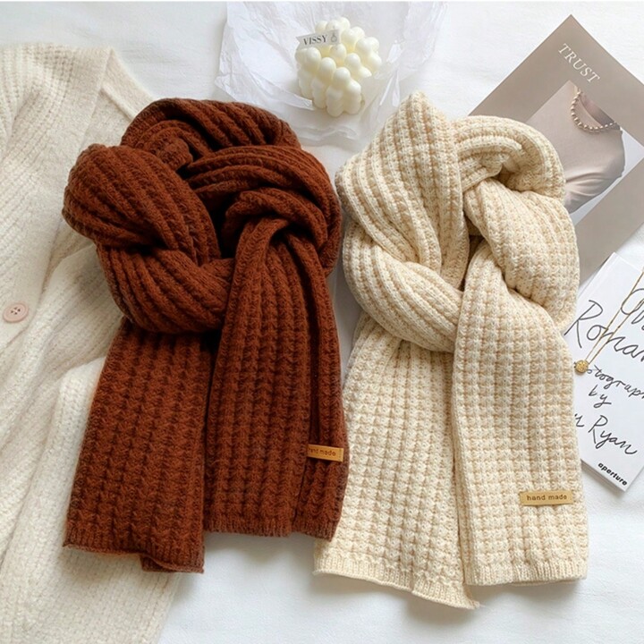 قطعة واحدة وشاح مصنوع يدويًا من ألوان موراندي الدافئة بلكعة من الجلد، وشاح أنيق وسهل التنسيق، مناسب للأنشطة الخارجية والتسوق في فصل الشتاء والخريف