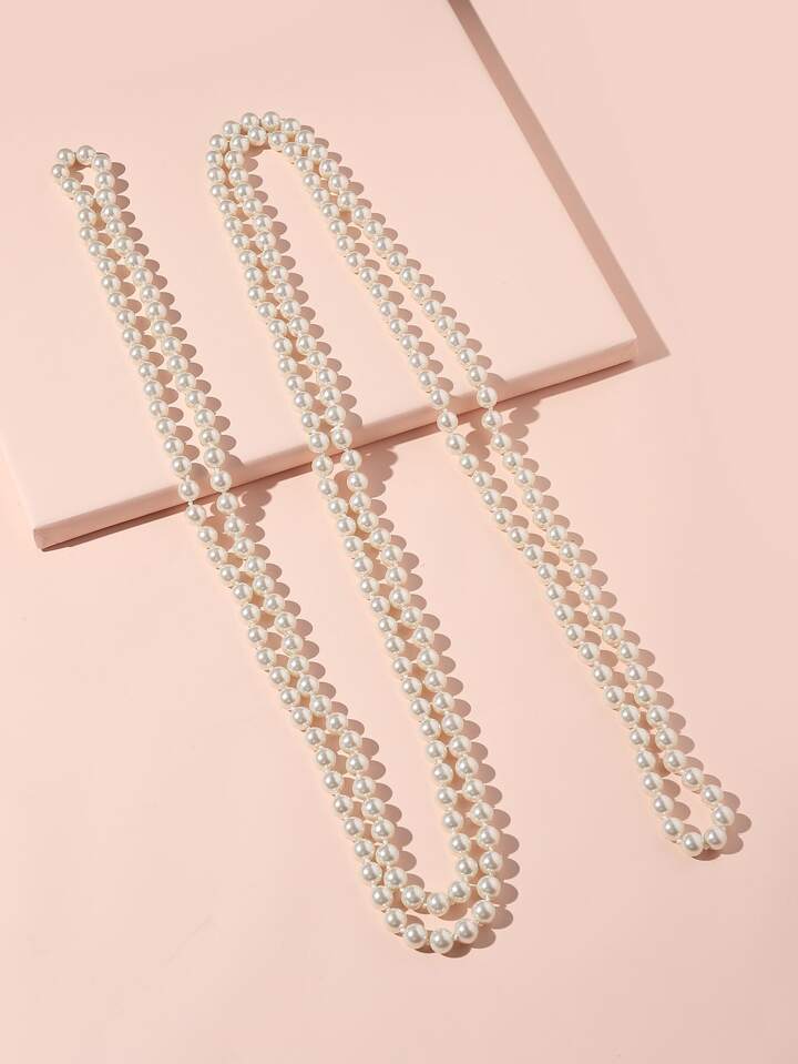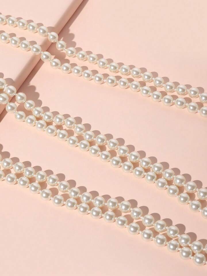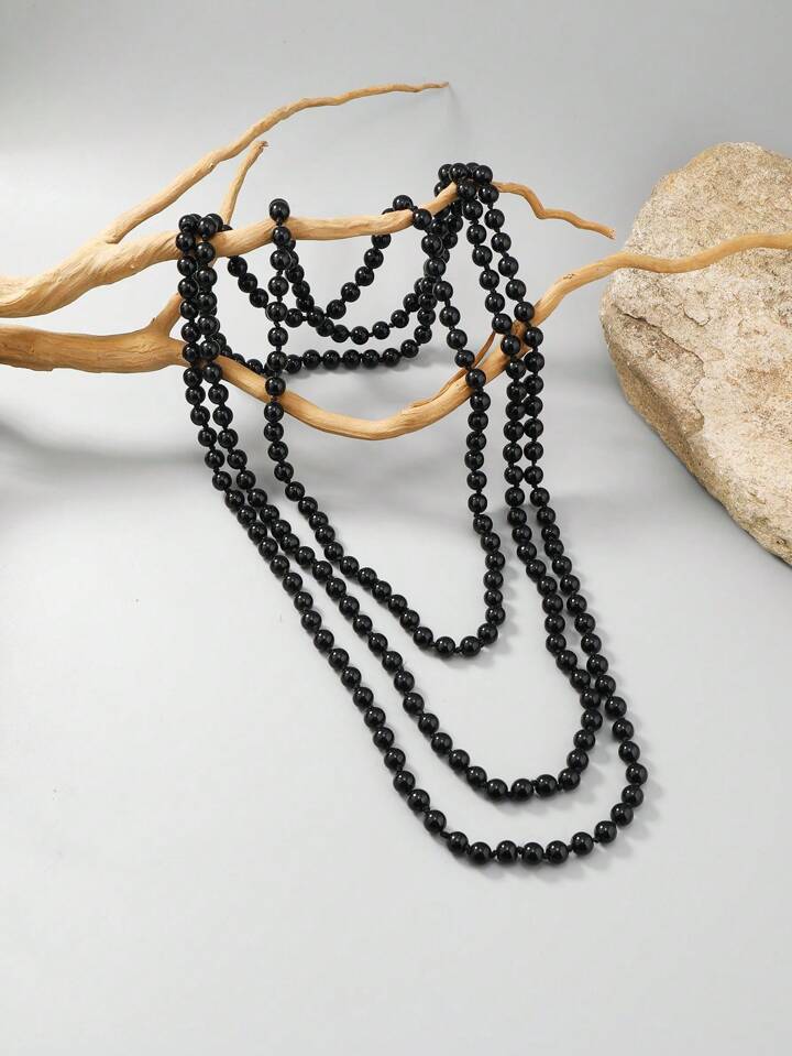 1 قطعة قلادة متعددة الطبقات من اللؤلؤ الزجاجي قابلة للتعديل والضبط في الطول للسيدات