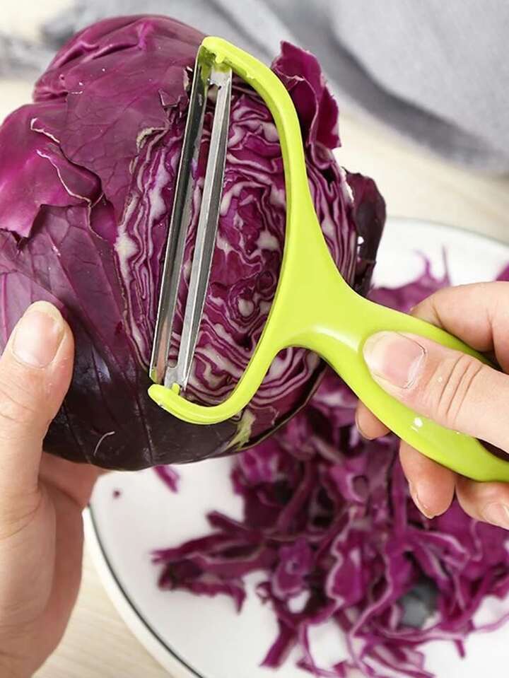 مبشرة ملفوف متعددة الوظائف، سكين تقشير من الفولاذ المقاوم للصدأ، لخس حديقة الملفوف الأرجواني، تقطيع مع فم واسع، مقشرة فواكه نباتية متعددة الوظائف قطعة واحدة
