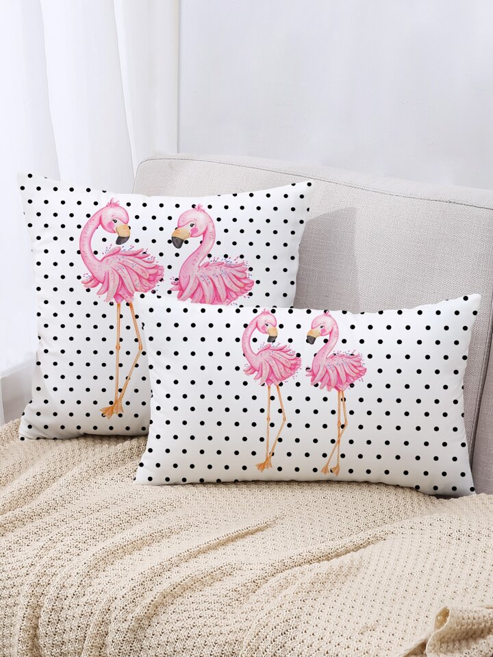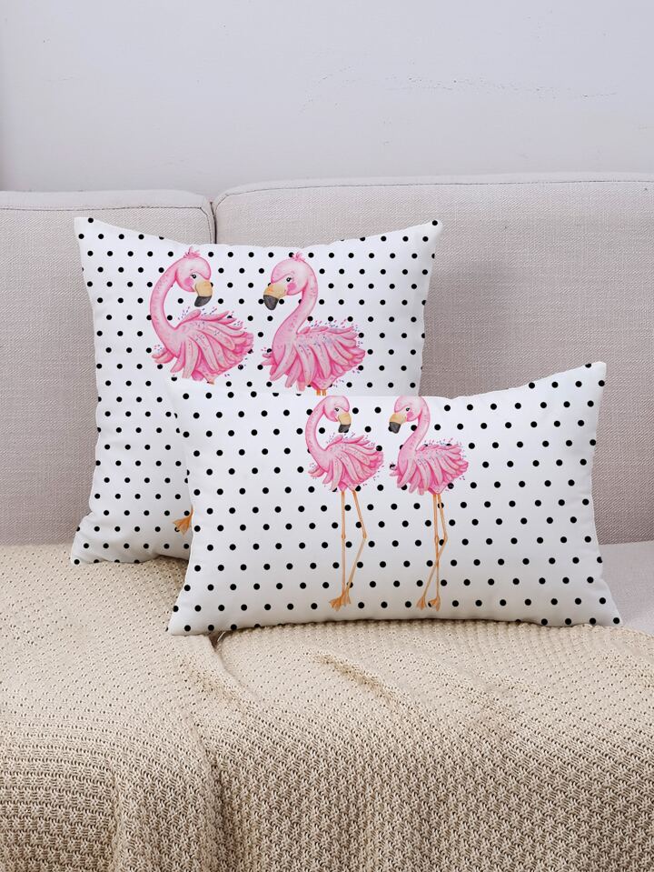 غطاء وسادة بدون حشوة بنقاط البولكا مع بطباعة فلامنغو قطعة واحدة