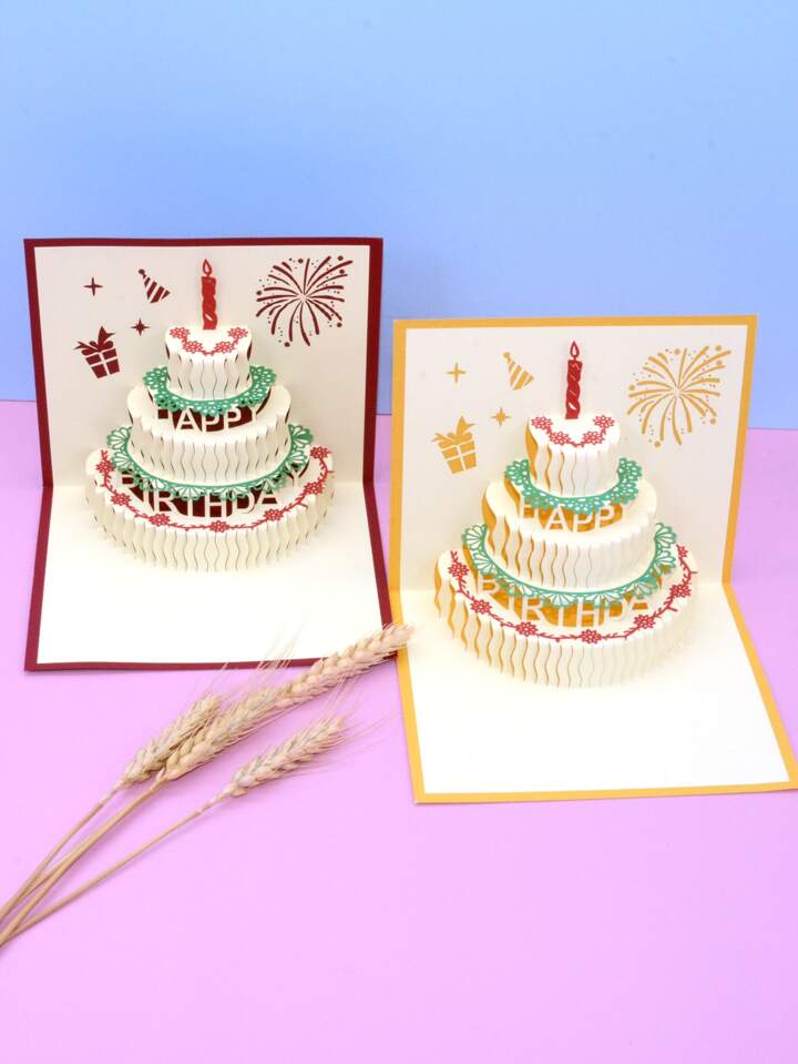بطاقة تهنئة كيك عيد ميلاد 3D عشوائي قطعة واحدة