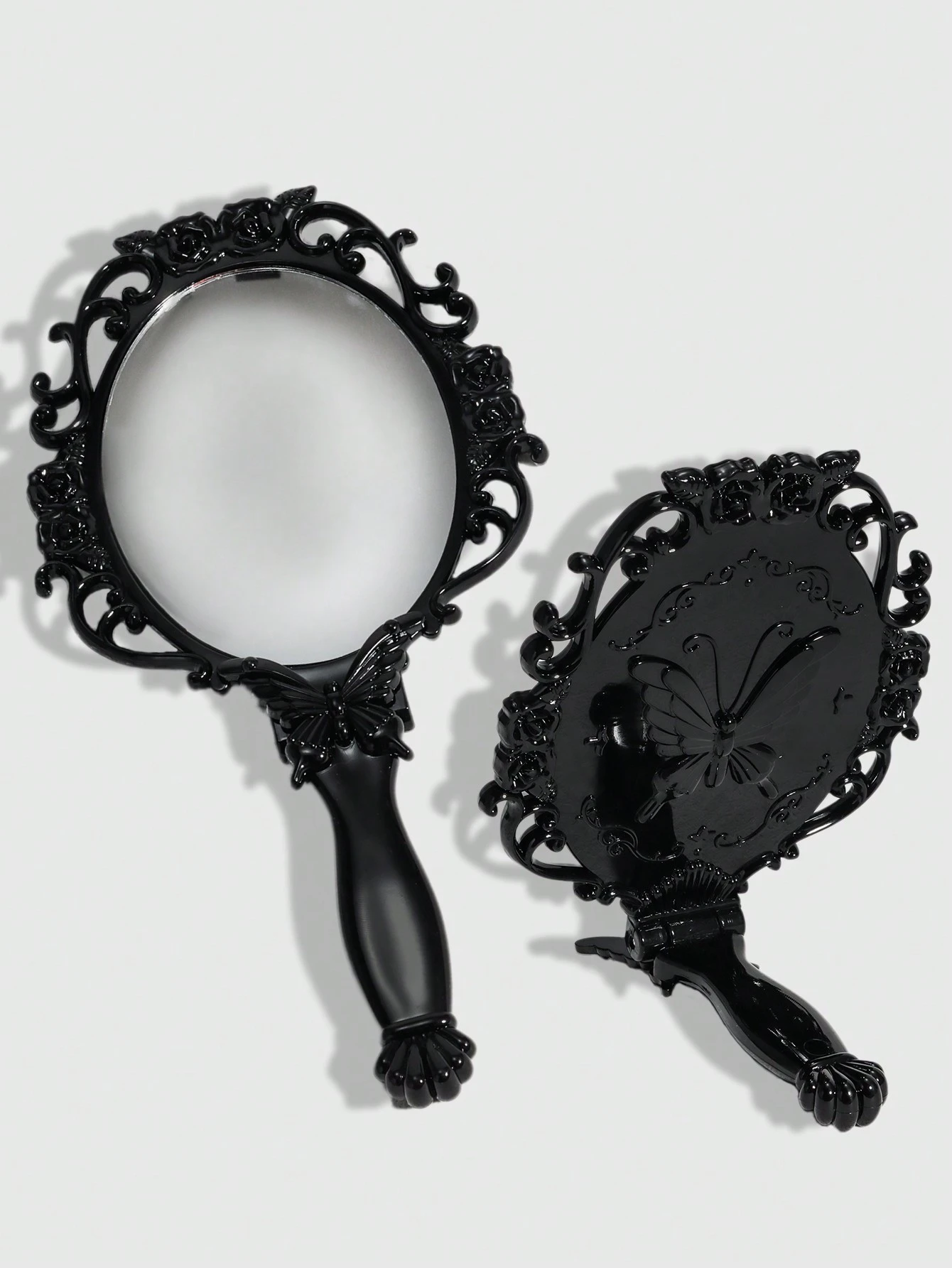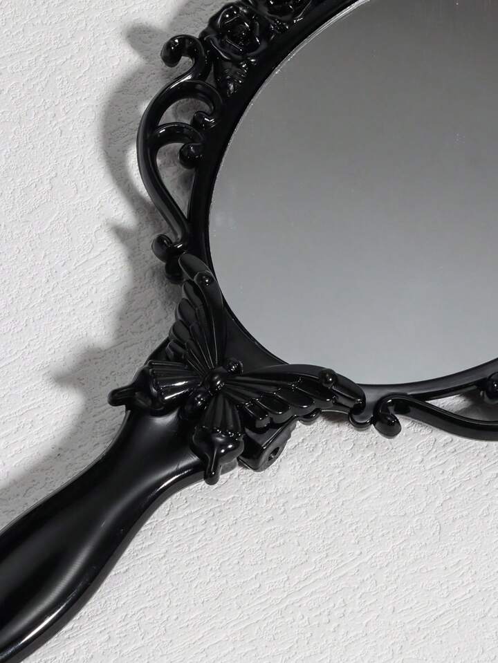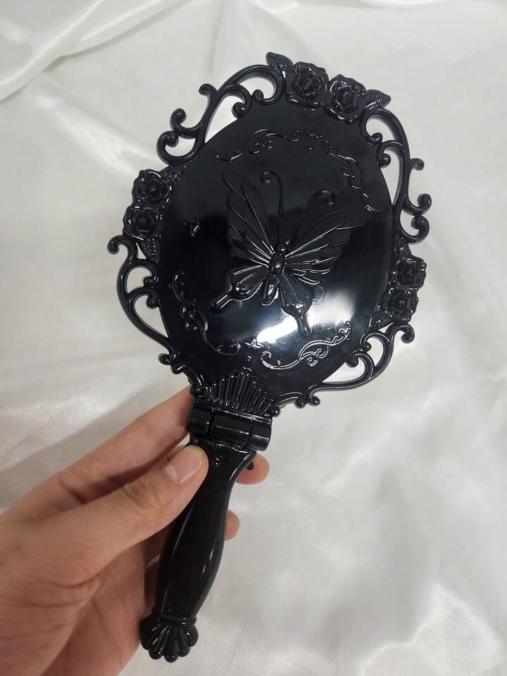 Goth مرآة يد قابلة للطي بطراز جوثي كلاسيكي أسود بشكل فراشة قطعة واحدة، محمولة للاستخدام أثناء السفر