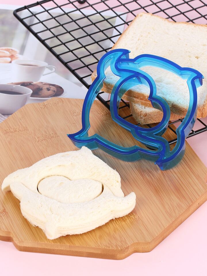 قالب تقطيع شطائر الإفطار البلاستيكي القابل لإعادة الاستخدام وقالب مطبخ بسكويت بسكويت على شكل دولفين أزرق إبداعي وللأطفال