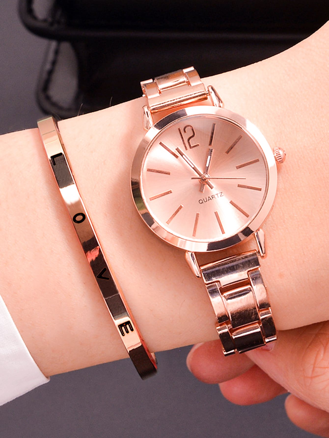 1 قطعة ساعة كوارتز ذات مؤشر دائري وسوار قطعة واحدة