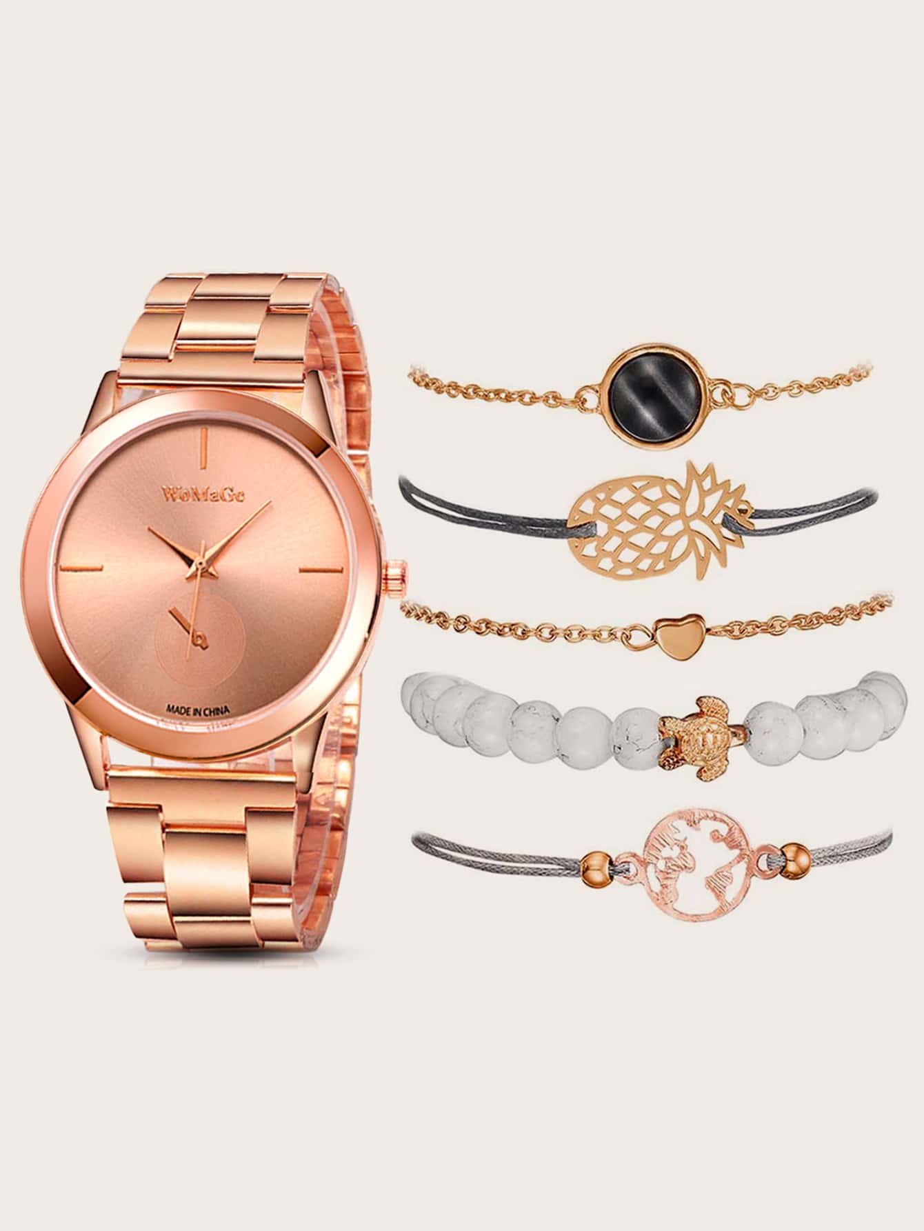 1 قطعة ساعة كوارتز ذات مؤشر دائري وسوار 5 قطعة