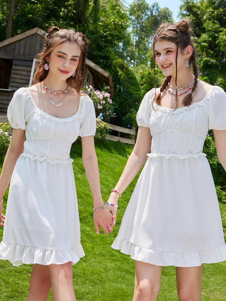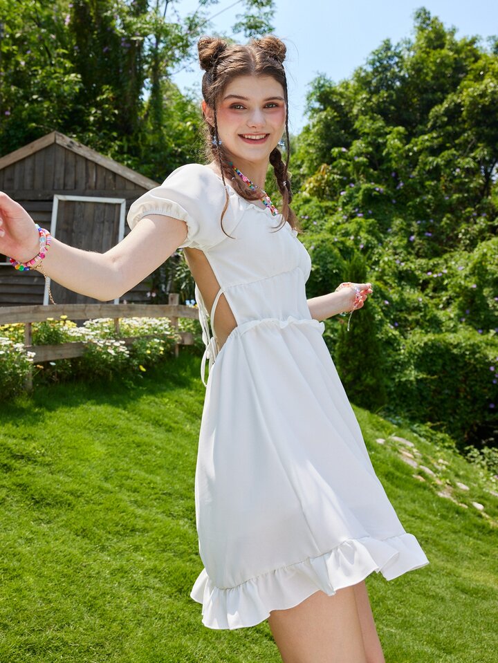 فستان مكشوف الظهر بربطة حافة مكشكشة قطعة واحدة