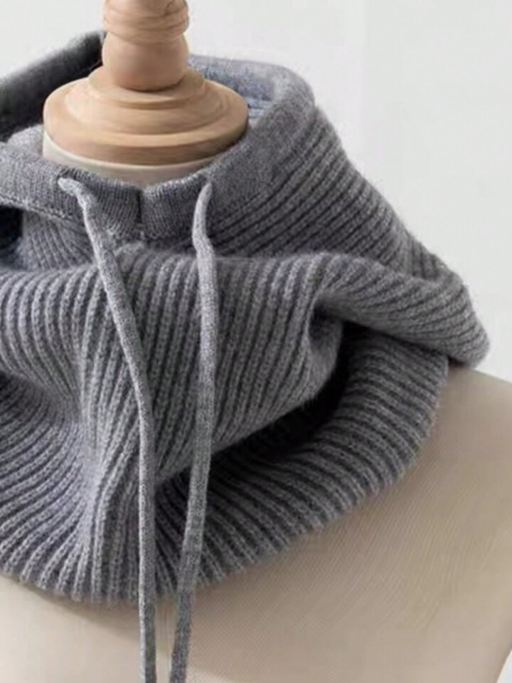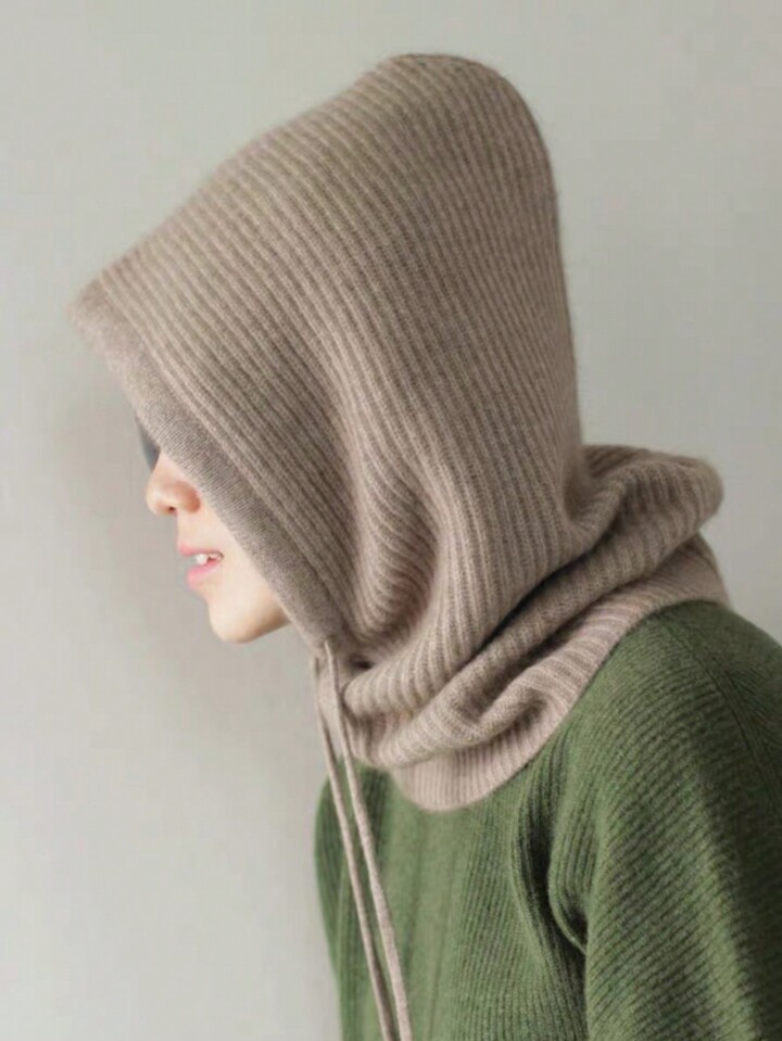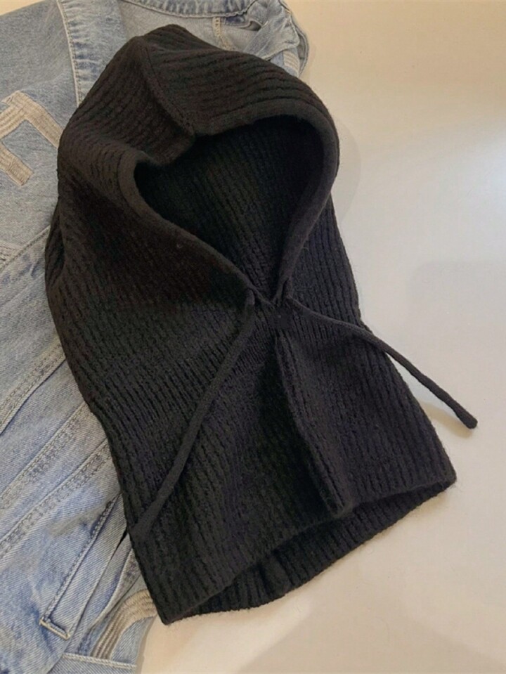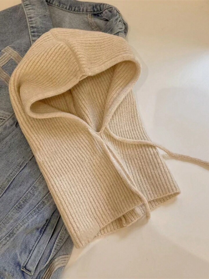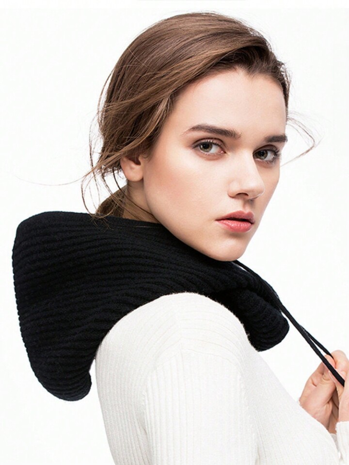 قبعة بيريه نسائية قطعة واحدة مع وشاح وتفاصيل كرات بوم، قبعة صغيرة محبوكة بغطاء للأذن