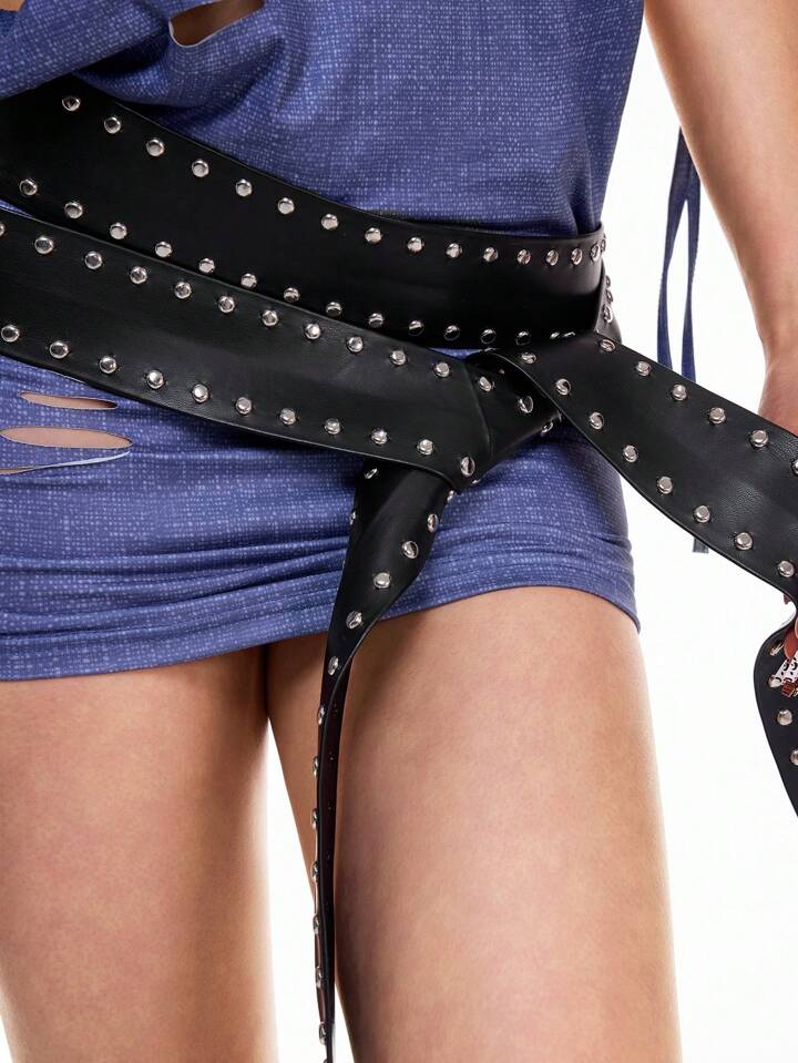 Goth قطعة واحدة فستان ربطة طويلة مزين بالحصى للنساء بطراز جوثي أسود ، مكمل للجينز يصلح للارتداء اليومي متعدد الاستخدامات