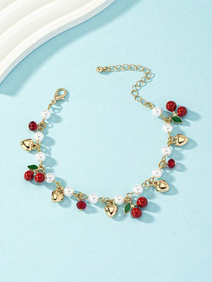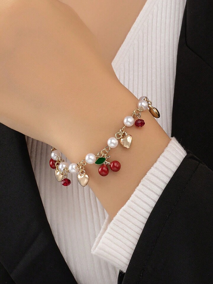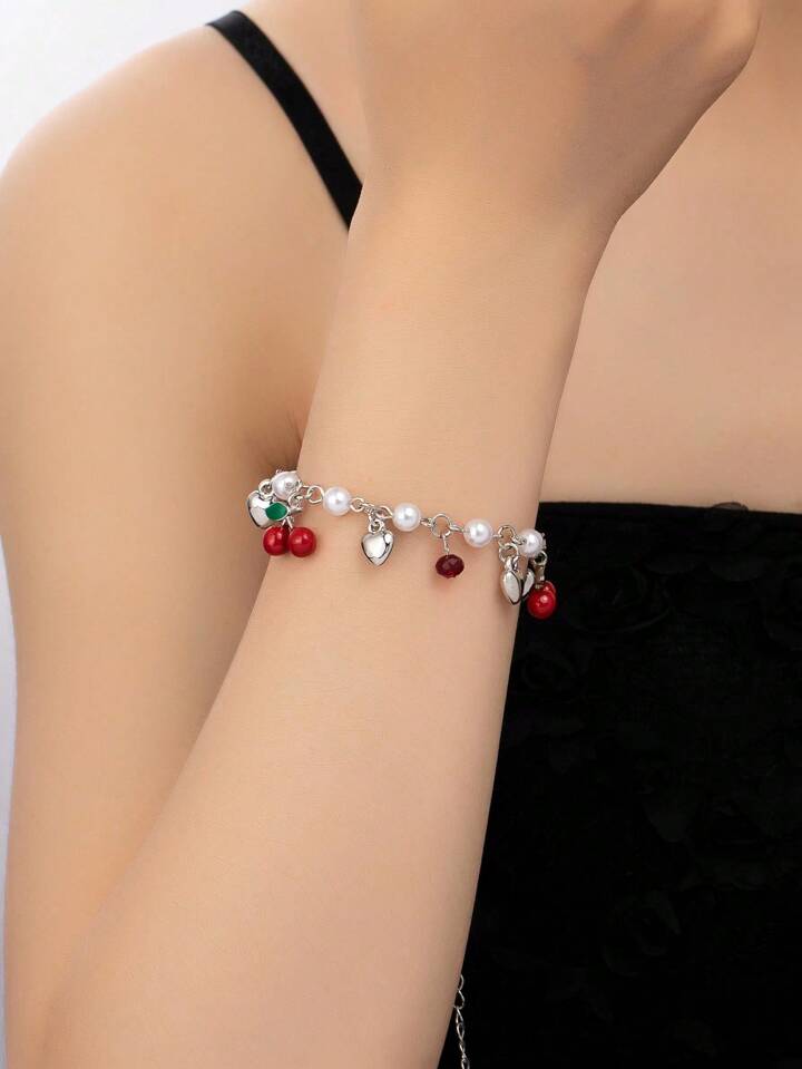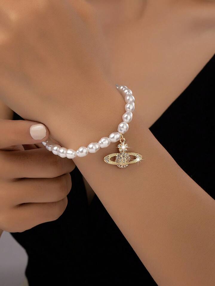 1 قطعة سوار من سبيكة وخرز قابل للتعديل مع تصميم برشام وخرز مرصع باللؤلؤ، بطراز أوروبي وأمريكي للنساء، مناسب للارتداء اليومي والهدايا المناسبة للأعياد