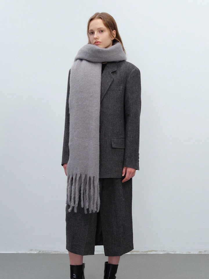 وشاح كاجوال أحادي اللون للنساء من البوليستر، مناسب للخروجات والتنقل في الخريف والشتاء قطعة واحدة