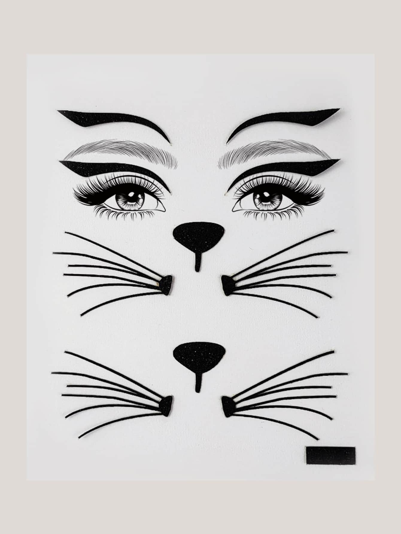 ملصقات وشم وجه شارب القط نمط ورقة واحدة