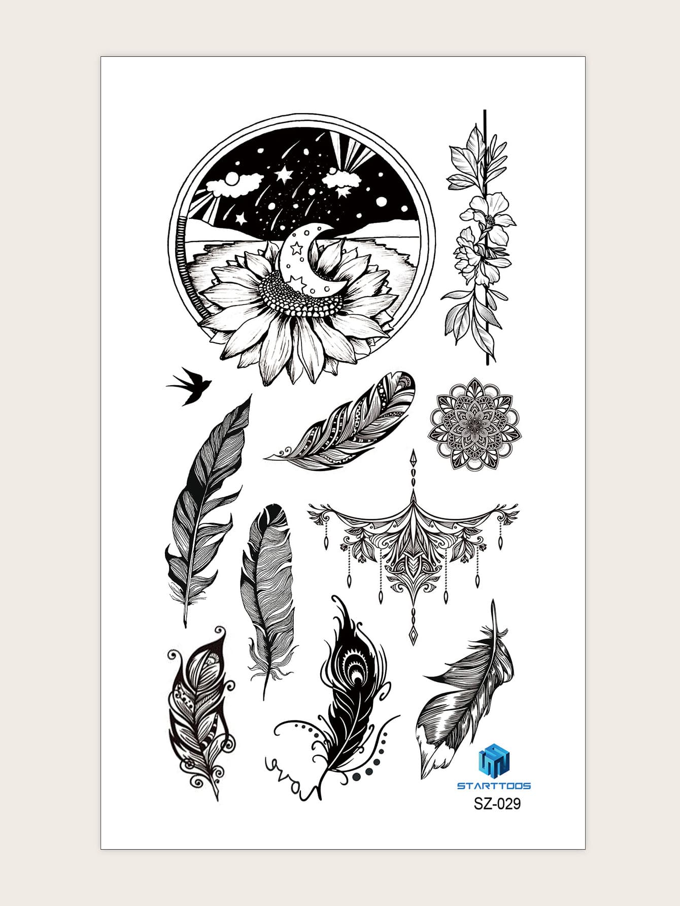 ملصق وشم بنمط ريش 1 ورقة