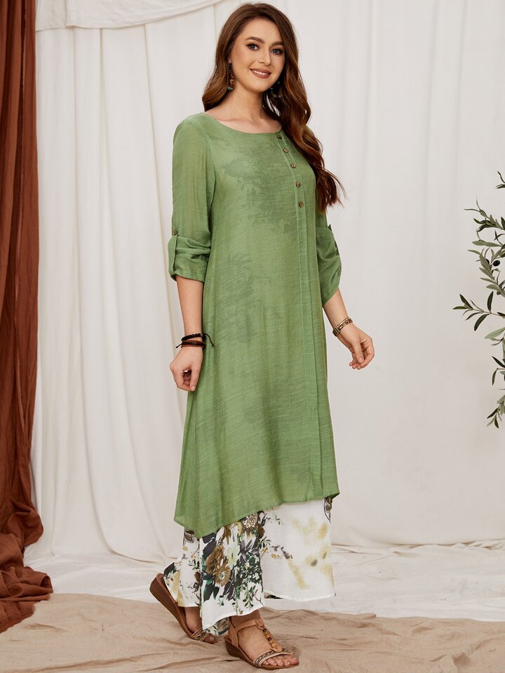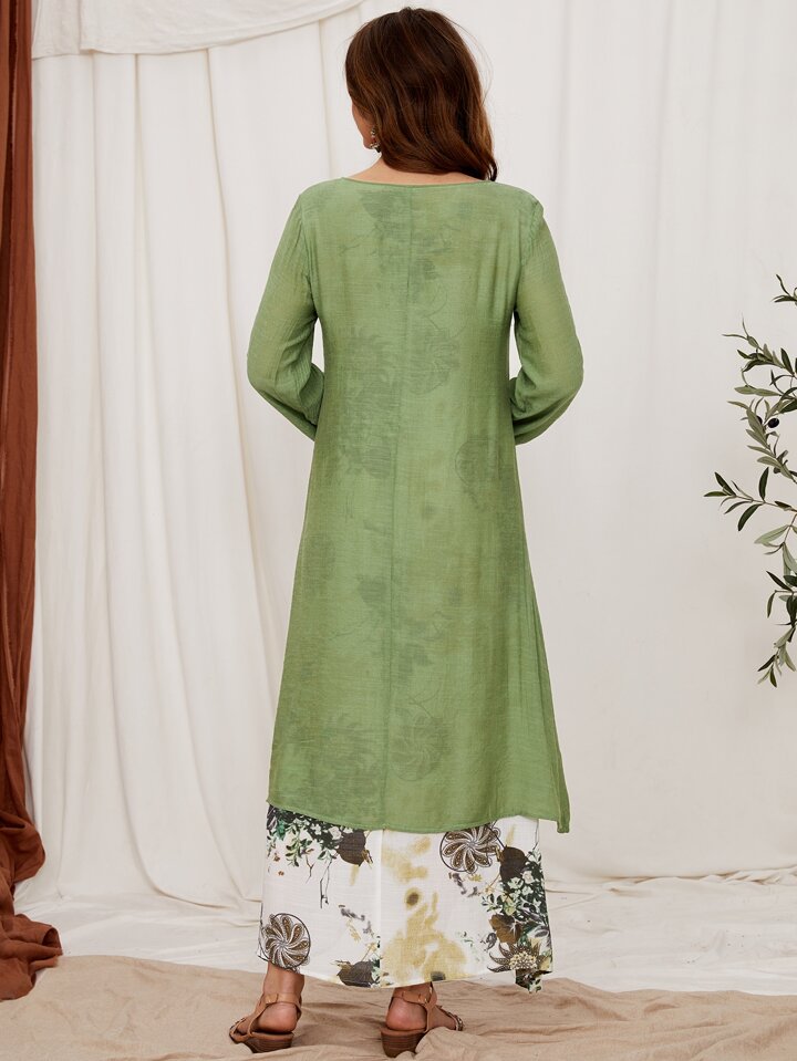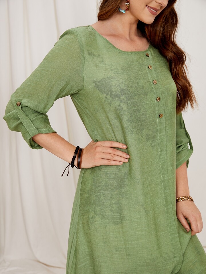 فستان تونك باكمام ملفوف مزهر 2 في 1