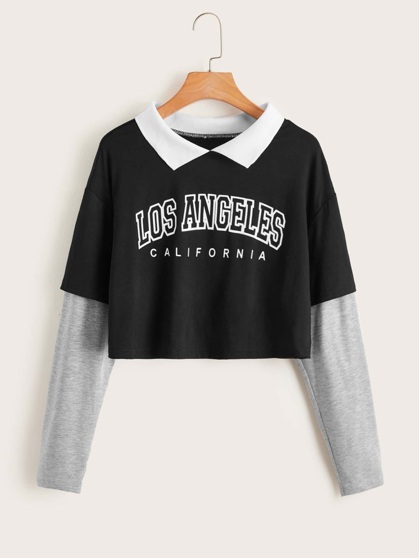 قمصان نسائية قبة متباينة حاجز اللون رسالة طلاب