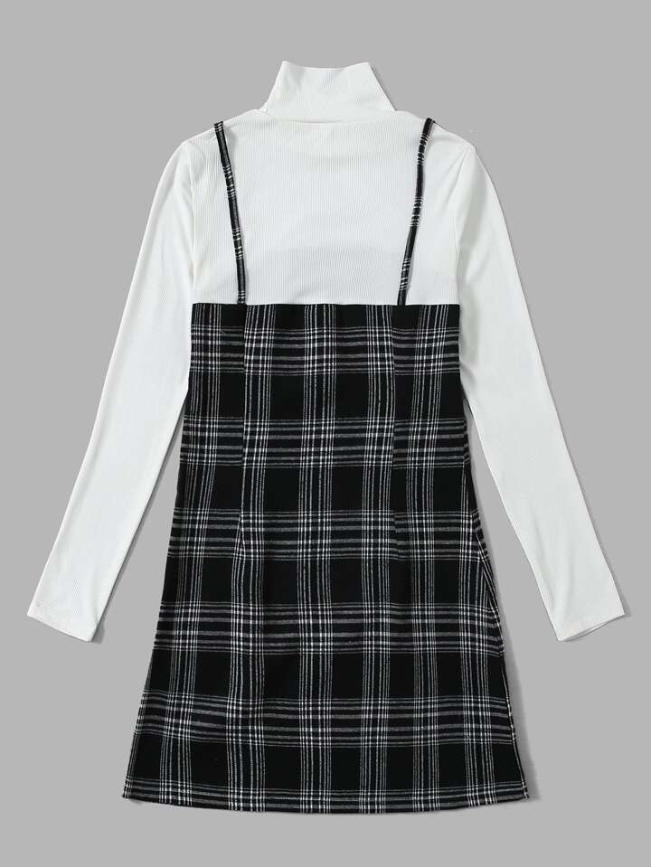 فستان 2 في 1 مربعات ملونة مضلع ياقة عمودي