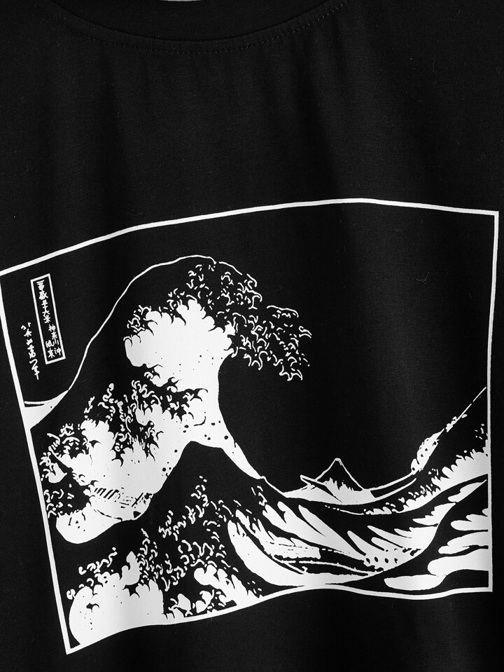 تي شيرت بجرافيك موج وبأكمام مخطط 2 في 1