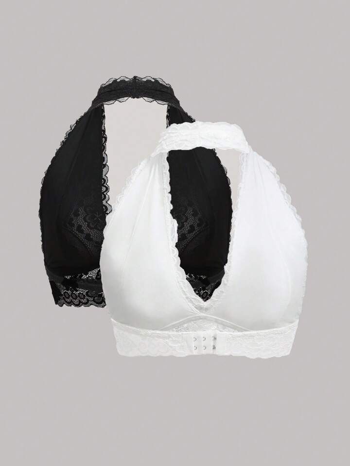 طقم حمالة صدر وسلسلة مخمليه مزخرفة بزهور الدانتيل، 2 حزمة