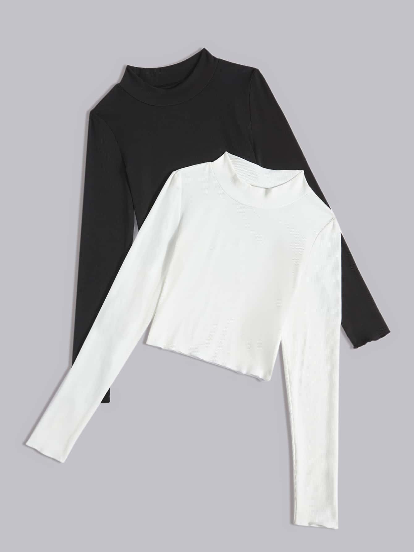 2 كمية، بلوزة عنق موك ذو لون واحد