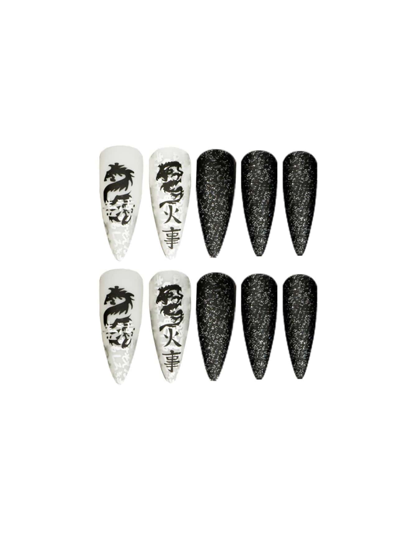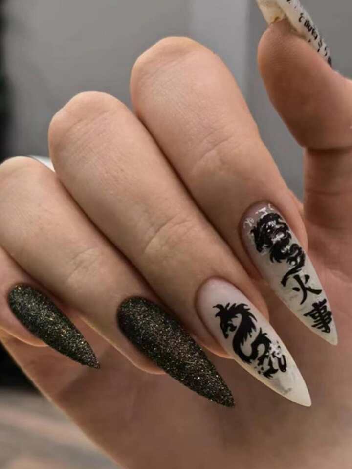 أظافر اصطناعية نمط التنين الصيني 24 قطعة