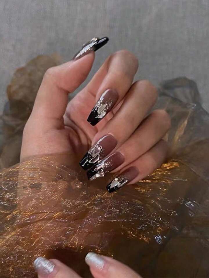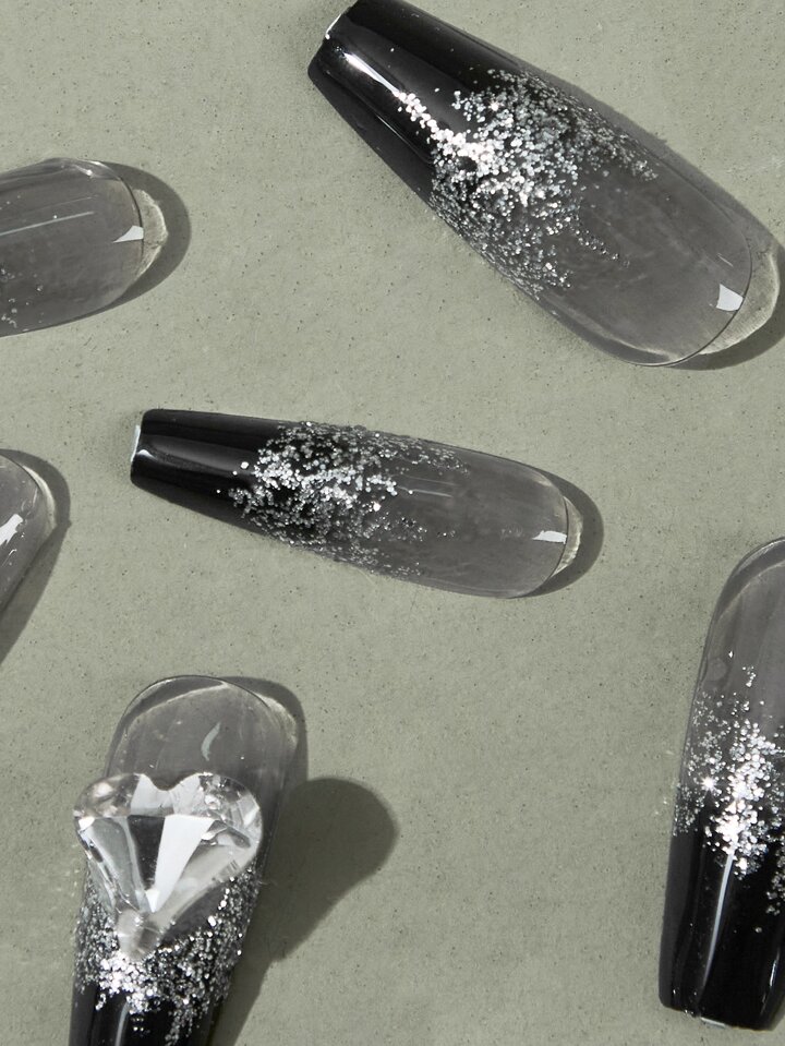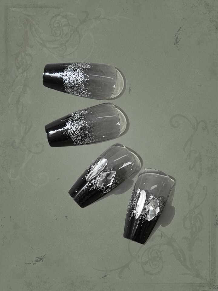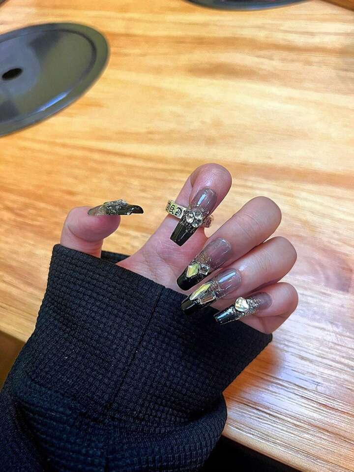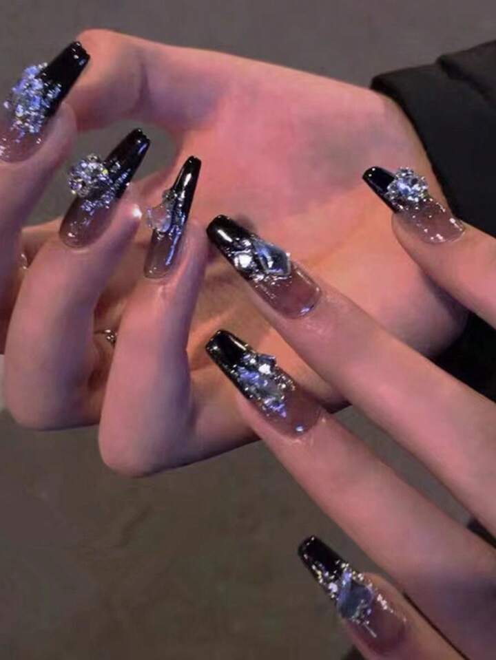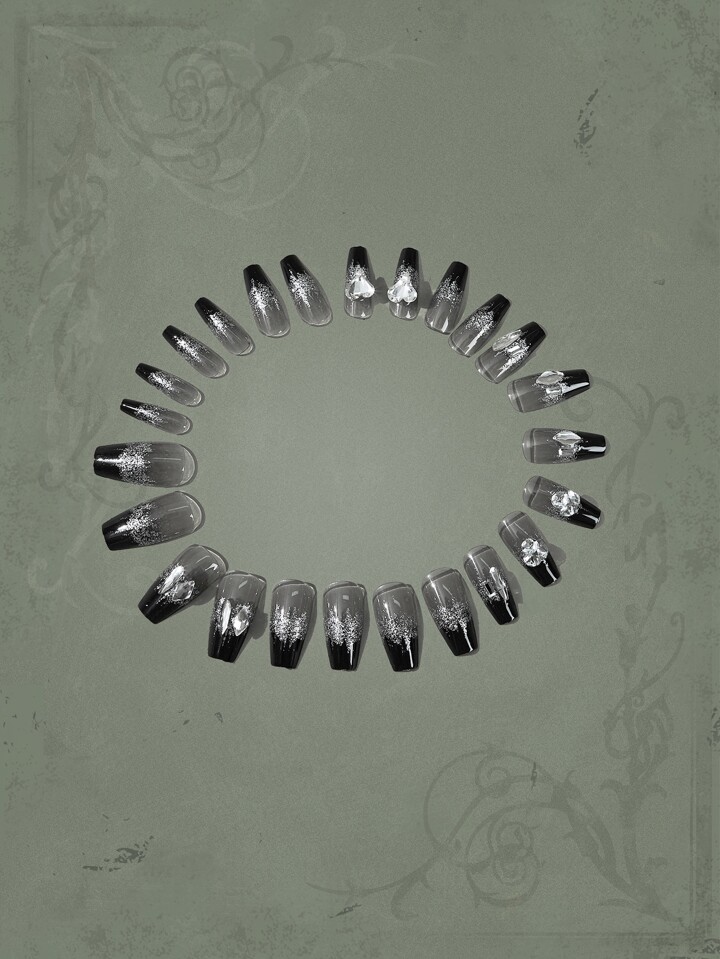 24 قطعة نعش ثلاثي الأبعاد بديكور حجر الراين أظافر اصطناعية و ورقة واحدة شريط