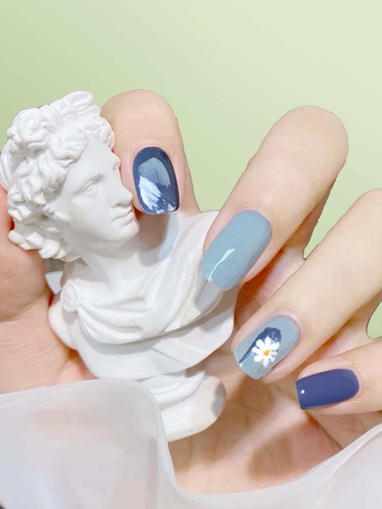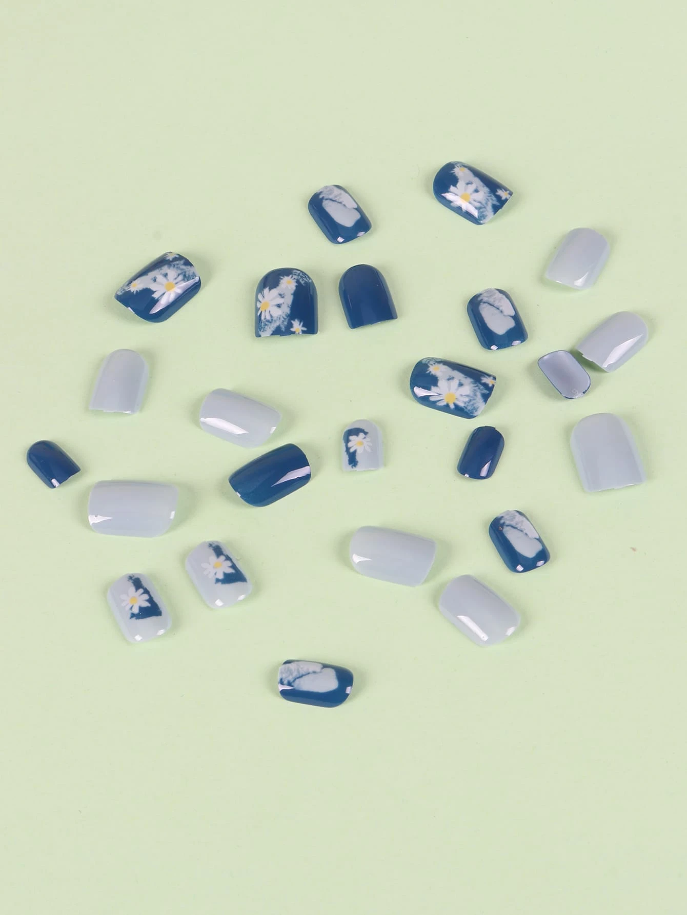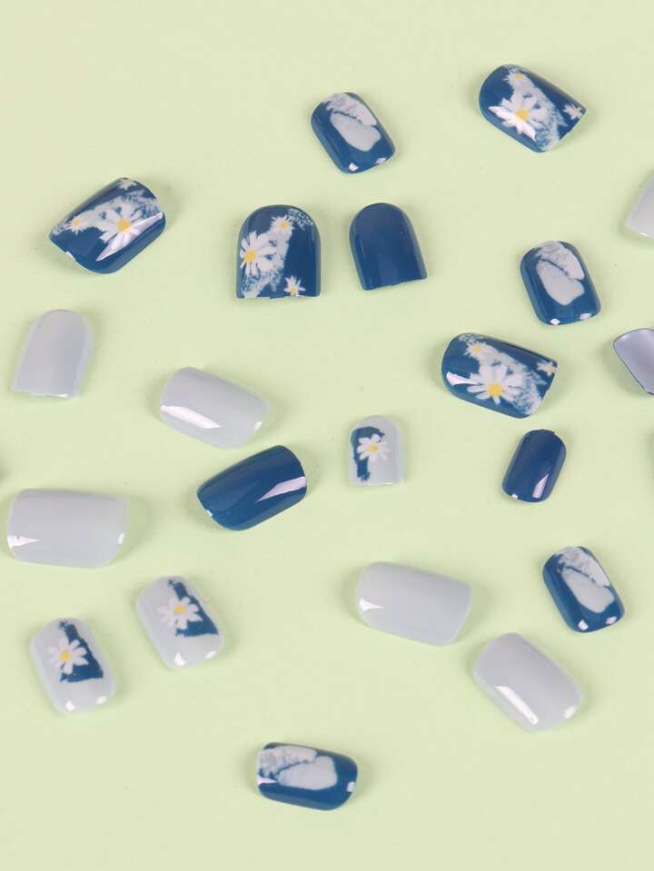 24 قطعة نمط زهر أظافر اصطناعية مع ورقة واحدة شريط