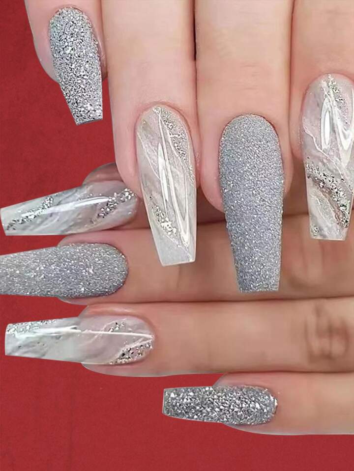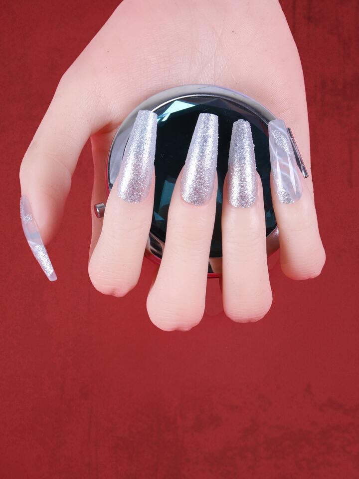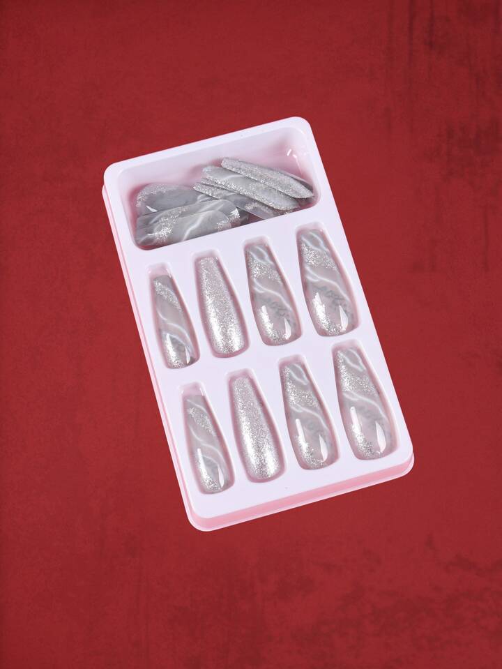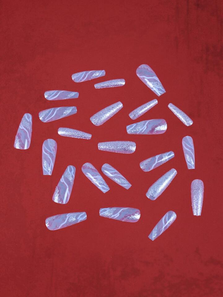 أظافر اصطناعية طويل نعش لامع 24 قطعة و شريط ورقة واحدة