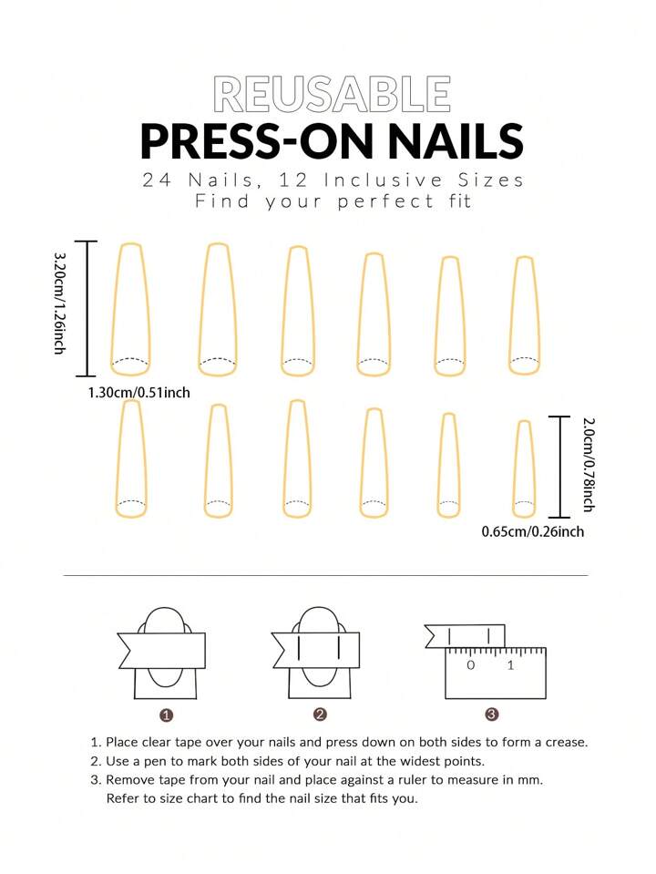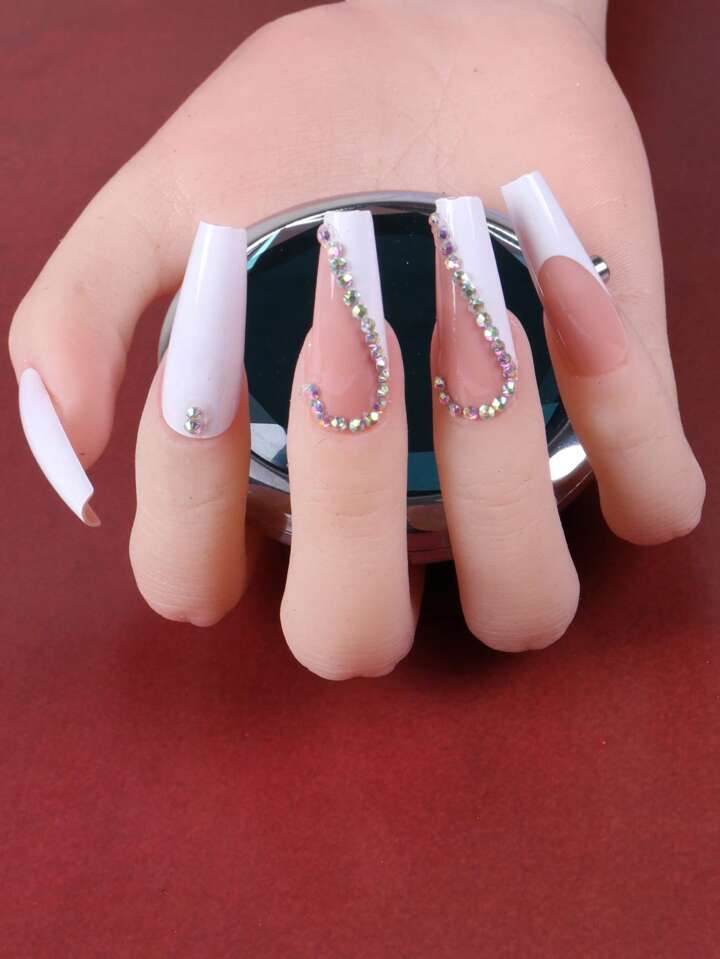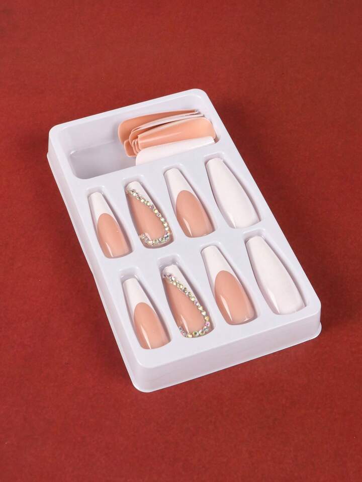 أظافر اصطناعية طويل نعش بديكور حجر الراين 24 قطعة و شريط ورقة واحدة