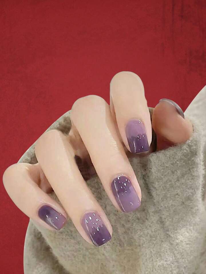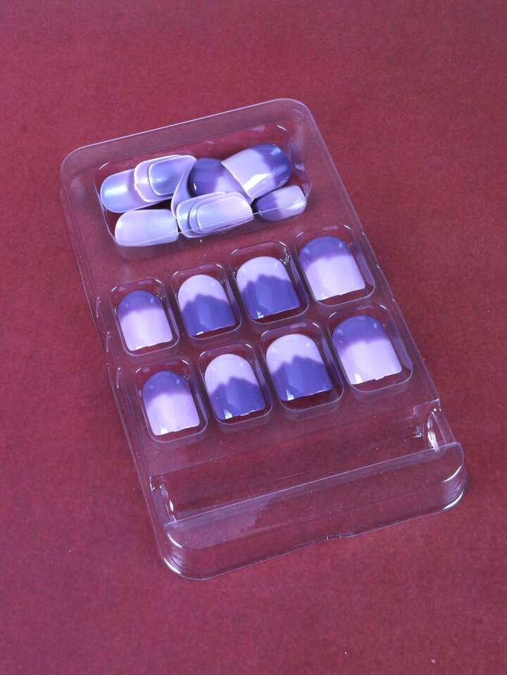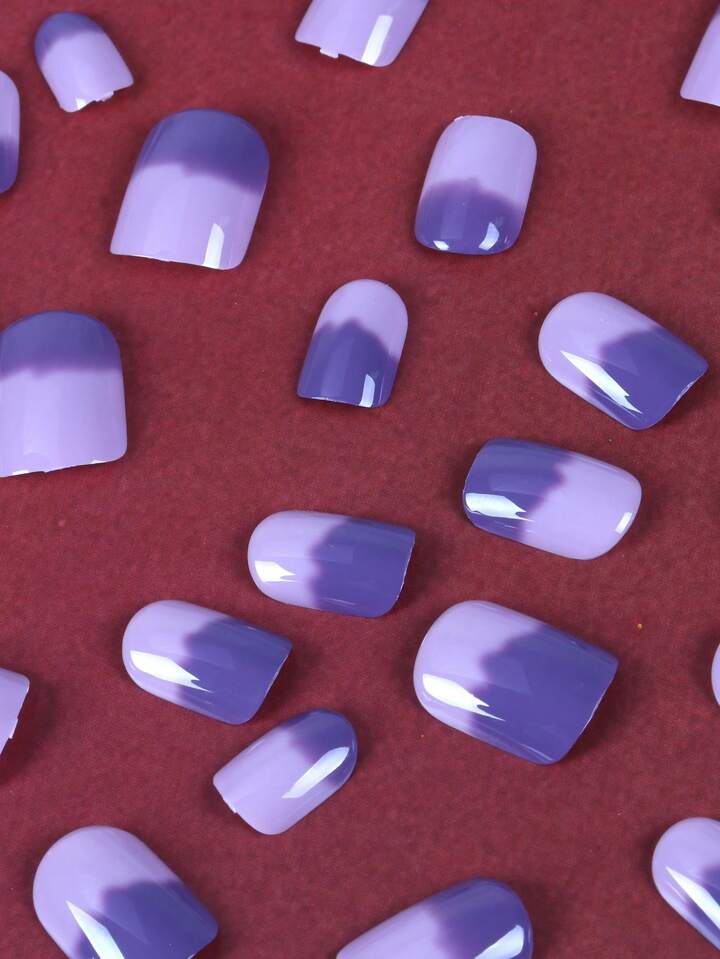 أظافر اصطناعية طويل مربع ألوان متدرجة 24 قطعة و شريط ورقة واحدة