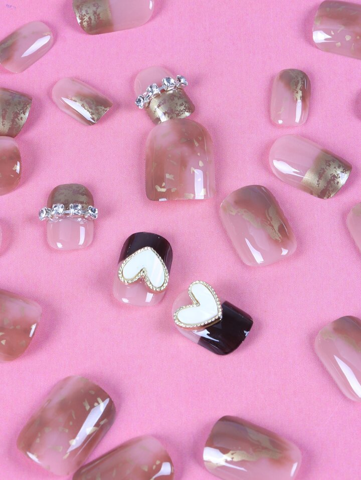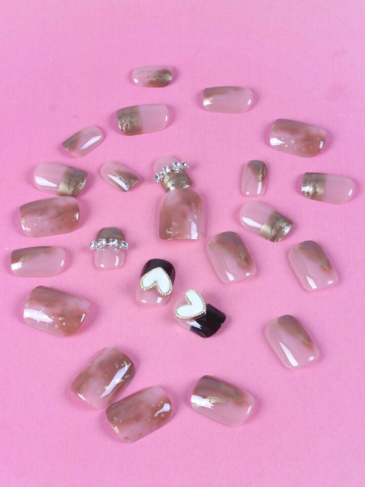 أظافر اصطناعية قصير مربع زخرفة قلب 24 قطعة و شريط ورقة واحدة