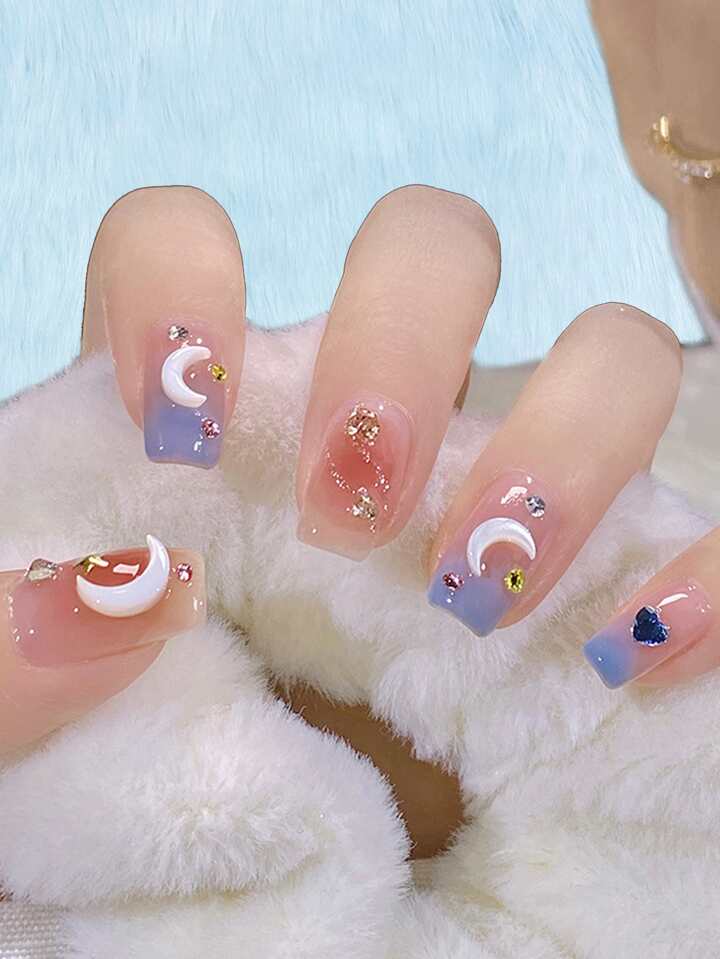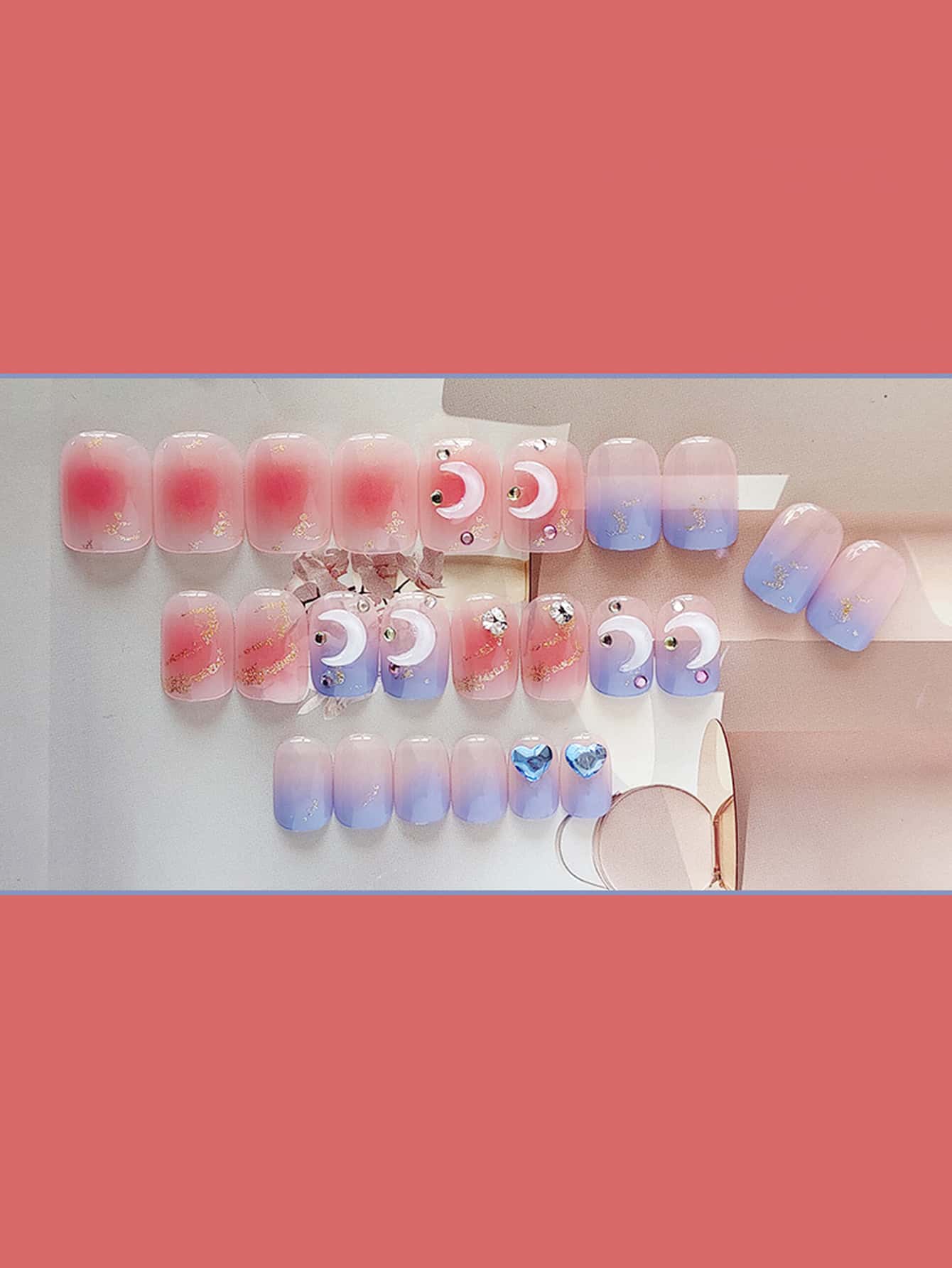 24 قطعة مربع ثلاثي الأبعاد زخرفة قلب أظافر اصطناعية و ورقة واحدة شريط