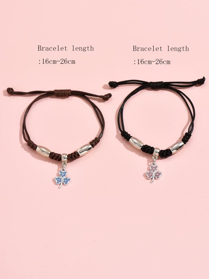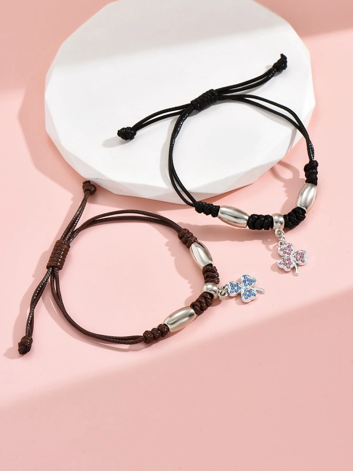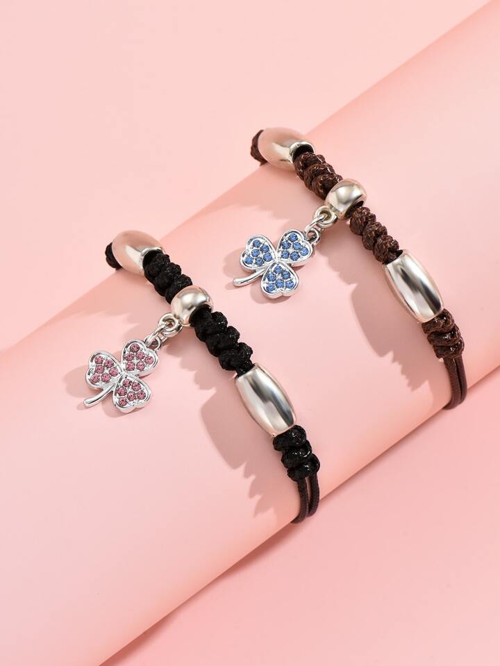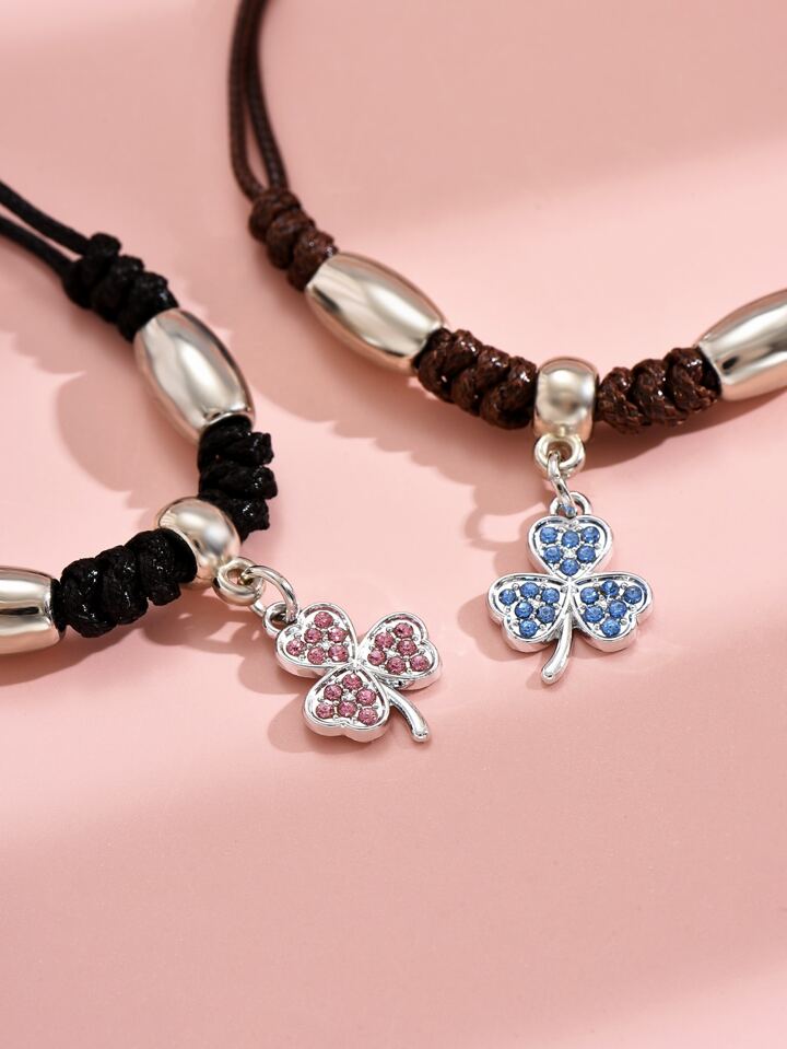 سوار زوج حجر الراين اربع اوراق برسيم حلية 2 قطع