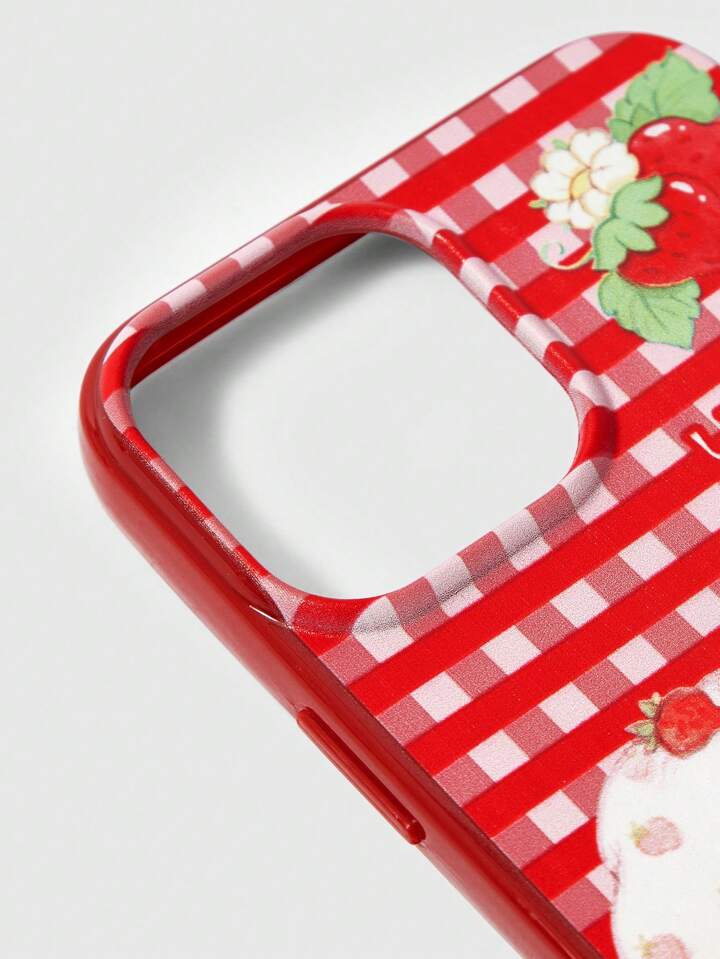 طقم سلسلة الرقبة وحافظة الهاتف بشكل فراولة كيوت متوافقة مع سلسلة ايفون 12/13/14 قطعتان