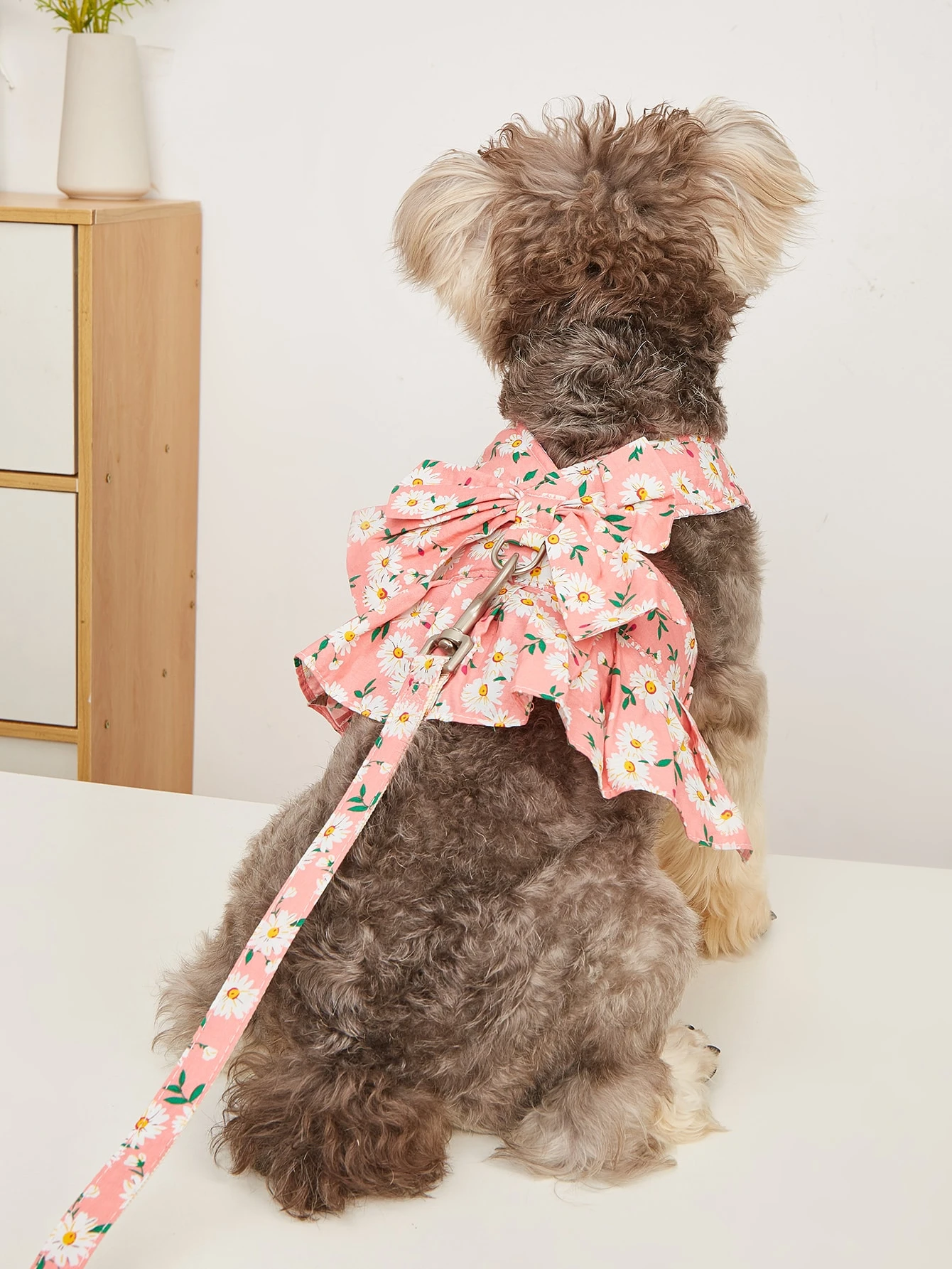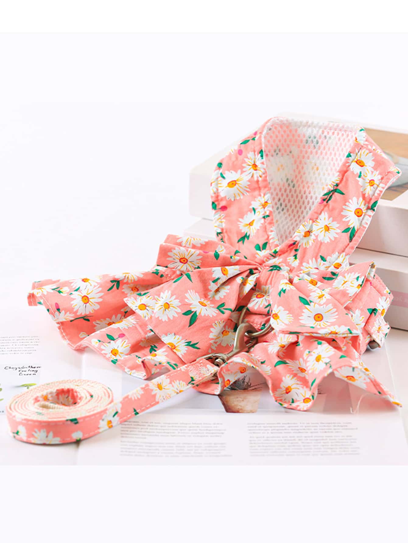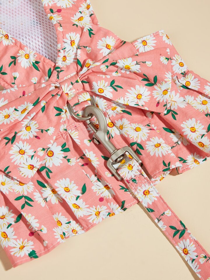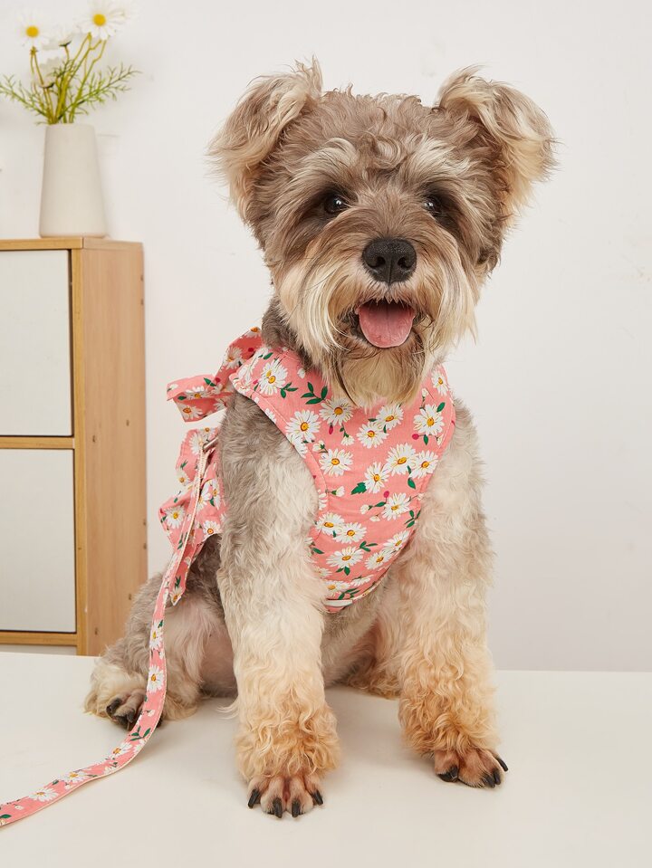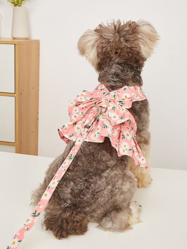 2 قطع طباعة زهرة حيوان اليف مع مقود طقم